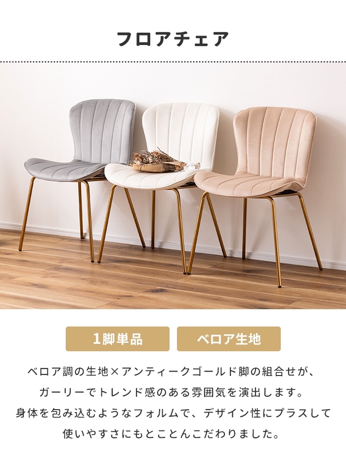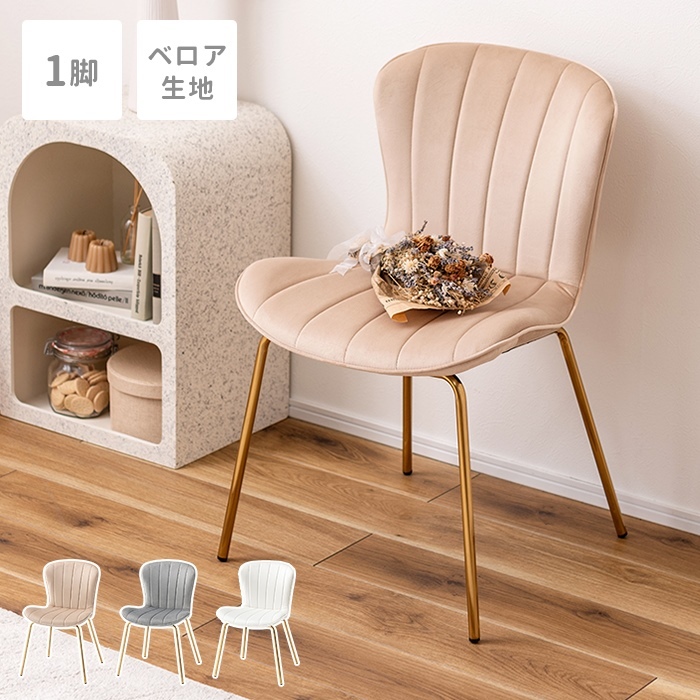 | チェア ダイニングチェア イス 椅子 いす 背もたれ 肘掛けなし アームレス シンプル かわいい 淡色 パステル おしゃれ アンティーク ゴールド ベロア ガーリー アイボリー 白 ホワイト ベージュ グレー 灰 ゴールド 金色 幅49 奥行75 高さ75 座面高43 ベロア調 ガーリー デスクチェア パソコンチェア 化粧台用 韓国インテリア 北欧 モダン 新生活 一人暮らし 1人掛け 一人掛け 1人用 1P |
