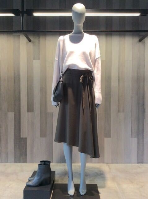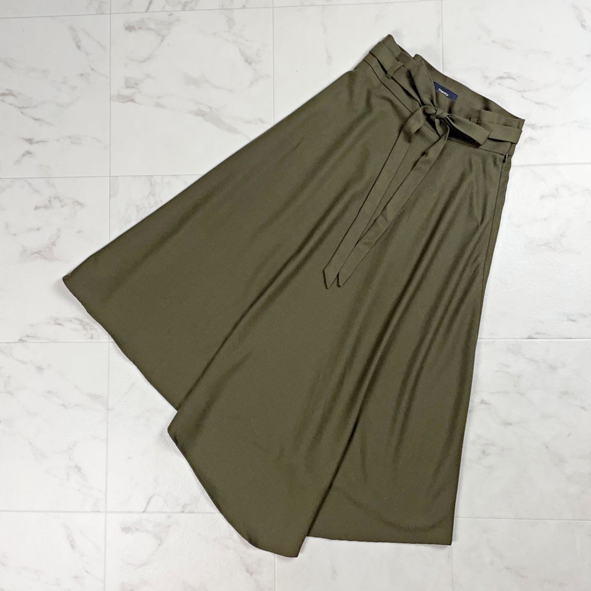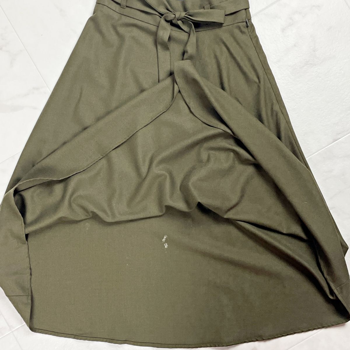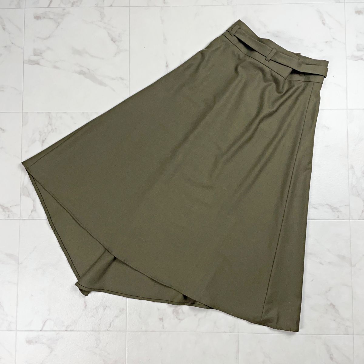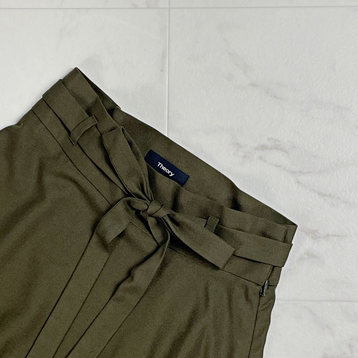 美品 Theory セオリー アシンメトリーデザイン フレアスカート ミモレ丈 ウエストリボン カーキ サイズ00*VC69