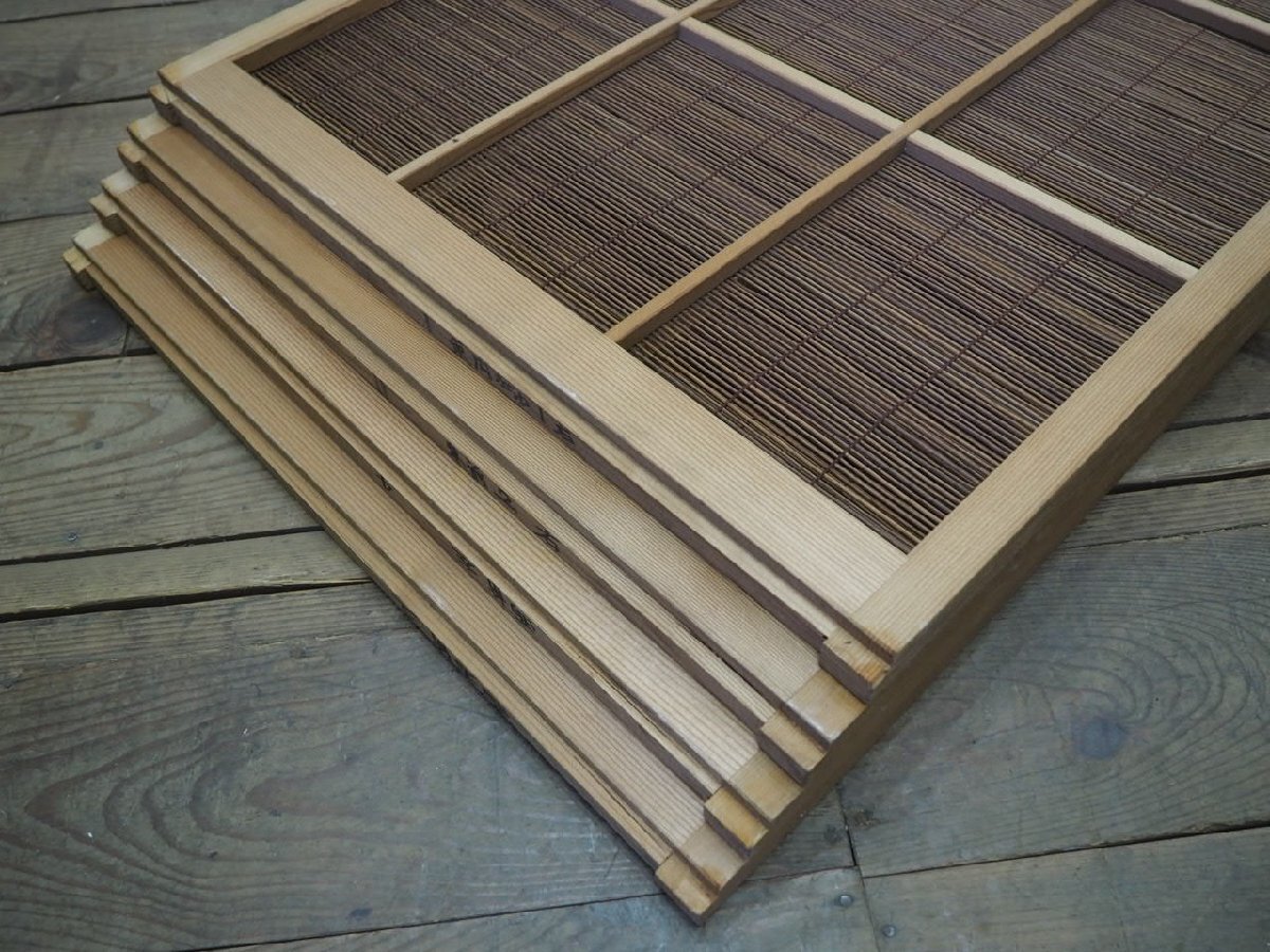 商品情報 | ■商品詳細■ レトロな古い簾戸、4枚セットです。 長年使い込まれた味わいのある品です。 一般のご家庭はもちろん、レトロな店舗什器にもお勧めです。 経年の傷や欠け、染みや落としきれない汚れ、 素材に折れや欠け等がありますが、使用には問題ありません。 古い物とご理解いただければ幸いです。 ◆別カテゴリーにて、同じデザインの品(T0273)を出品していますので まとめてご希望の場合は、ストア内検索で上記の管理番号を検索して頂ければと思います。 売買済みの場合はご了承下さい。 ご不明な点などありましたら、質問欄にてお願いします。 ■サイズ■ 全体(最大値) (H 176,5cm×W 67cm×D 3cm)×4枚 竪框 3cm 鴨居に入る部分 1,5cm 多少の誤差はご了承下さい。 ドライバー1人での配達になりますので、場合(通路が狭い等)によっては 荷運びのお手伝いをお願いすることがあります。 商品は玄関先までの配達になります。 |
