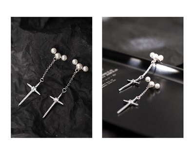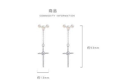 ピアス シルバー パール S925 クロス ジルコン 結婚式 チェーン 真珠 メンズ レディース ガールズ パーティー ジュエリー #C587-6