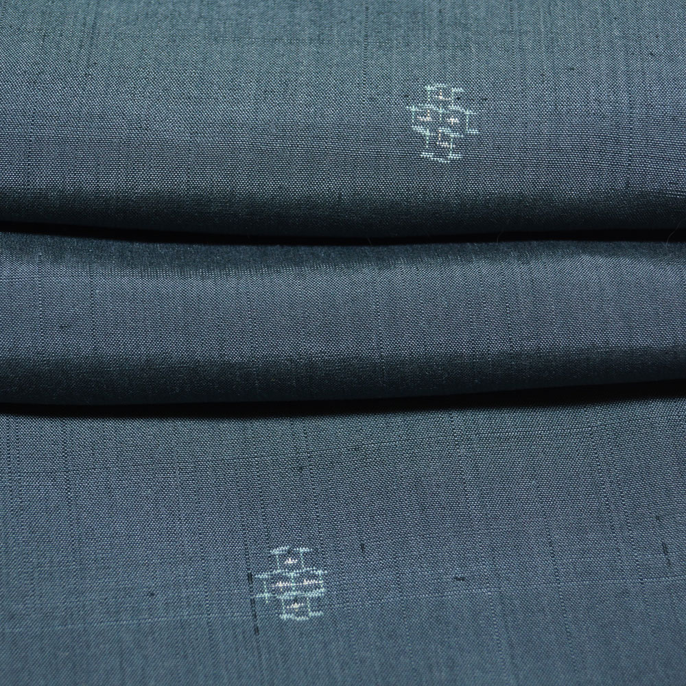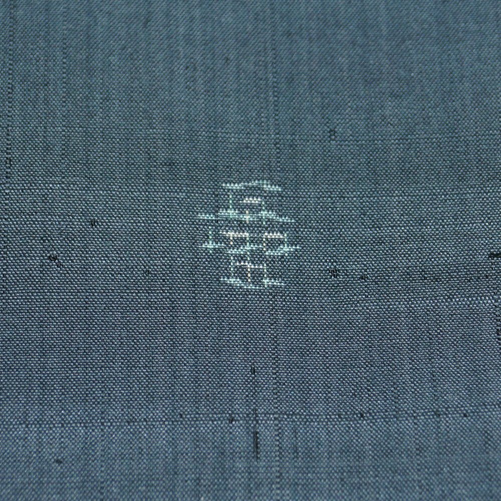 | 商品説明 | 藍鼠色系の地に亀甲模様が織られた紬です。 | ||