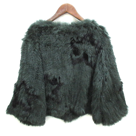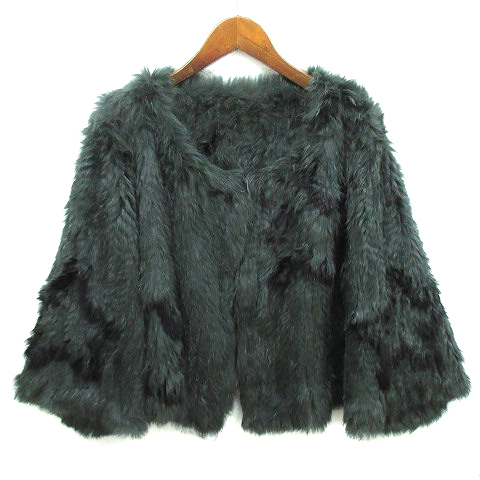 FIGURINE 池田商店 ラビットファー 毛皮 ノーカラー ジャケット 羽織 スター 星柄 グリーン 緑 レディース