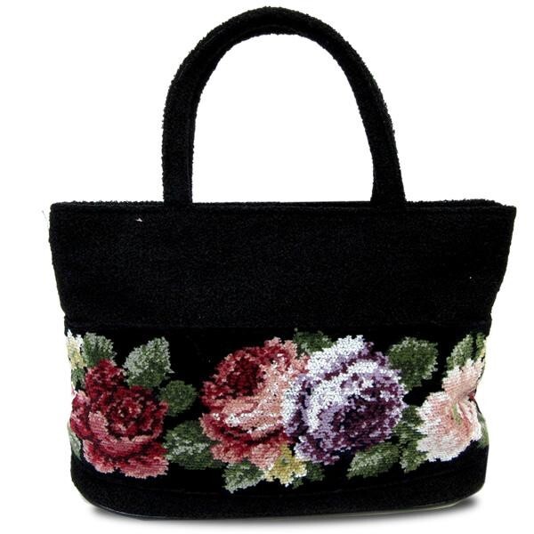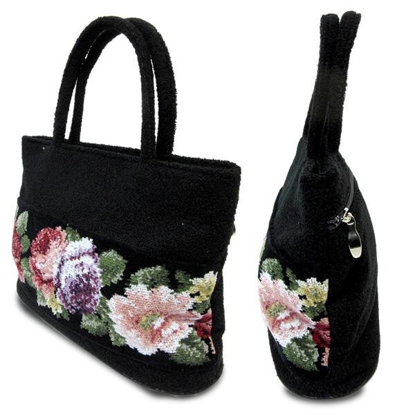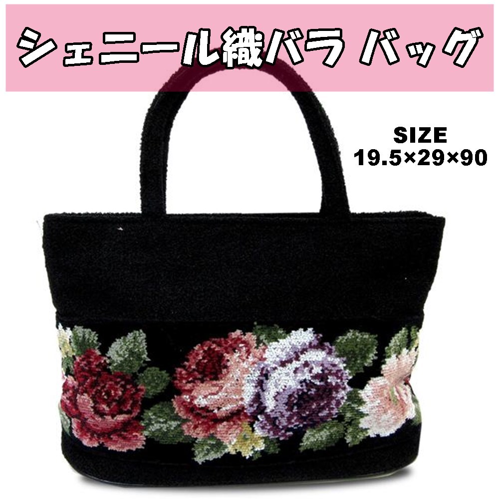 カラフルなバラのデザインとぬくもり感で品が漂う「シェニール織バラ」軽量バッグシリーズのトートバッグです。