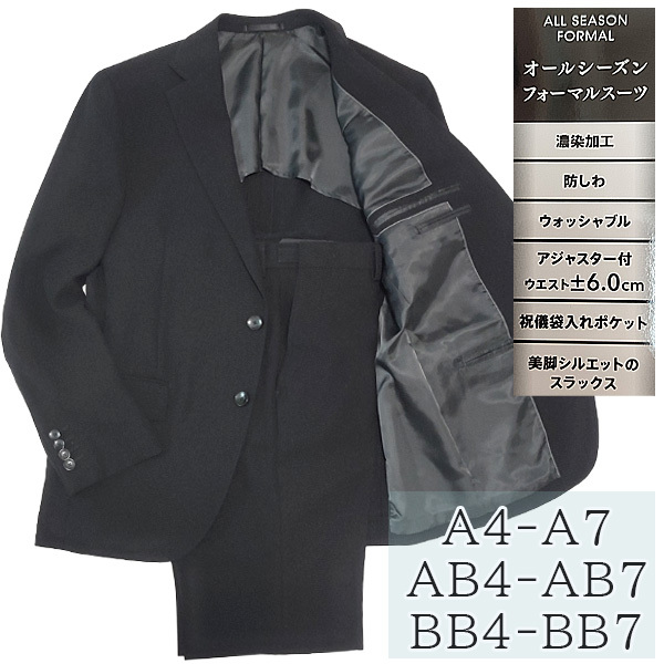 メンズ オールシーズン対応 2Bシングル スーパーブラックフォーマル シングルスーツ 冠婚葬祭 喪服 礼服 2101 AB7
