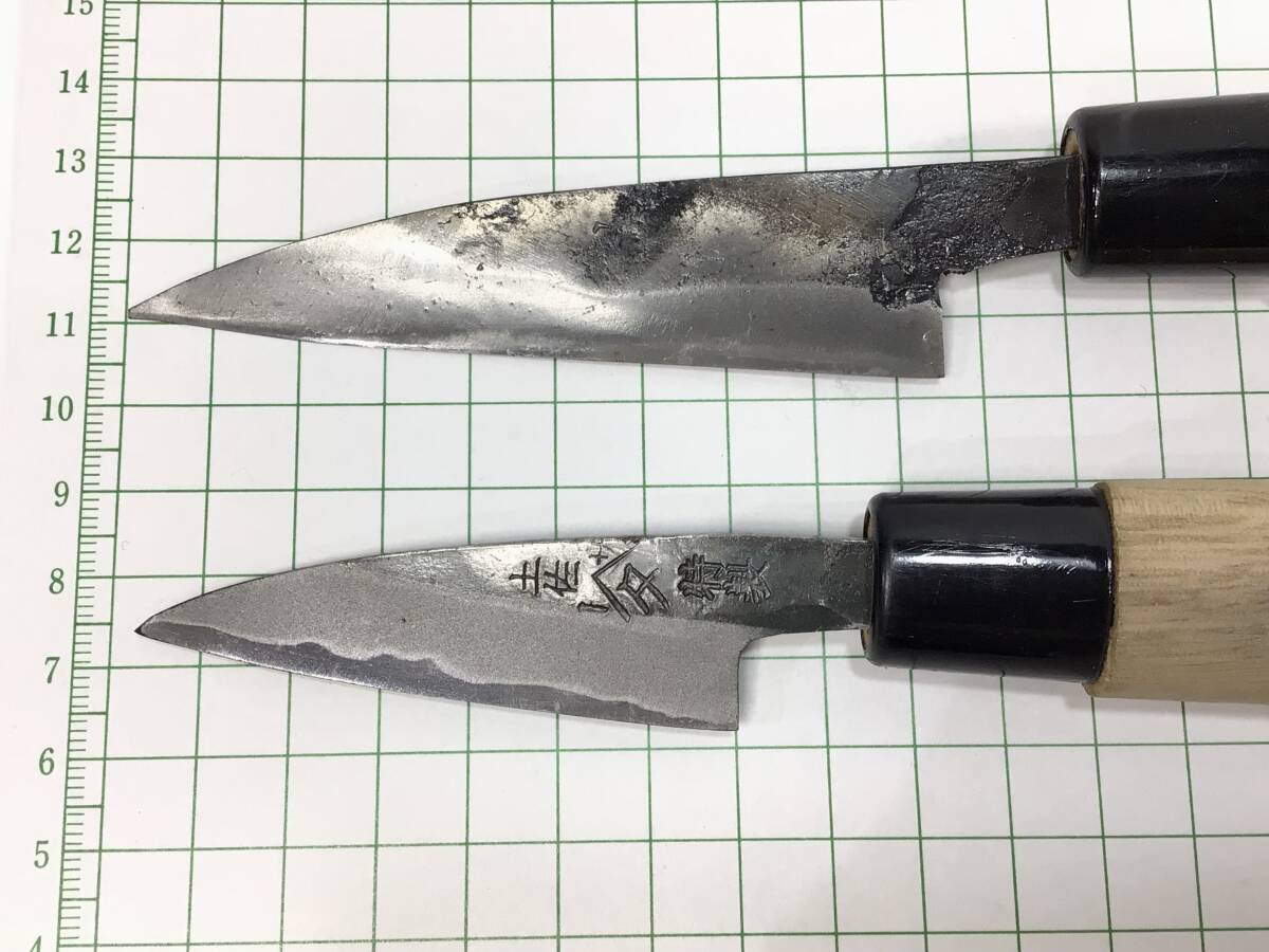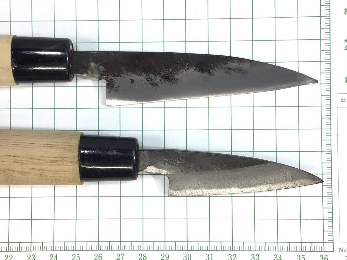 コレクションの整理をしています。「新品・未使用品・レアな、土佐 高知県 本場特産 打刃物 黒打ち 手造り仕上げ あじ切り 特殊 万能 庖丁 包丁 ミニサイズ サイズ違い 2点 まとめて セット 自宅保管品」の出品になります。★プロ向けの特殊庖丁です。用途は主に小魚などの調理ですがミニサイズの万能包丁としても使用できます。小さくて軽いので長時間の使用でも疲れません。キャンプなどにも最適です。一般には売っていないレアな商品ですので必要な方はぜひこの機会に入札していただければうれしいです。状態は写真の画像でよく確認していただき了解のうえ入札してください。発送はヤフネコネコポスを予定しています。他にもいろいろ出品していますのでよろしくお願いします。