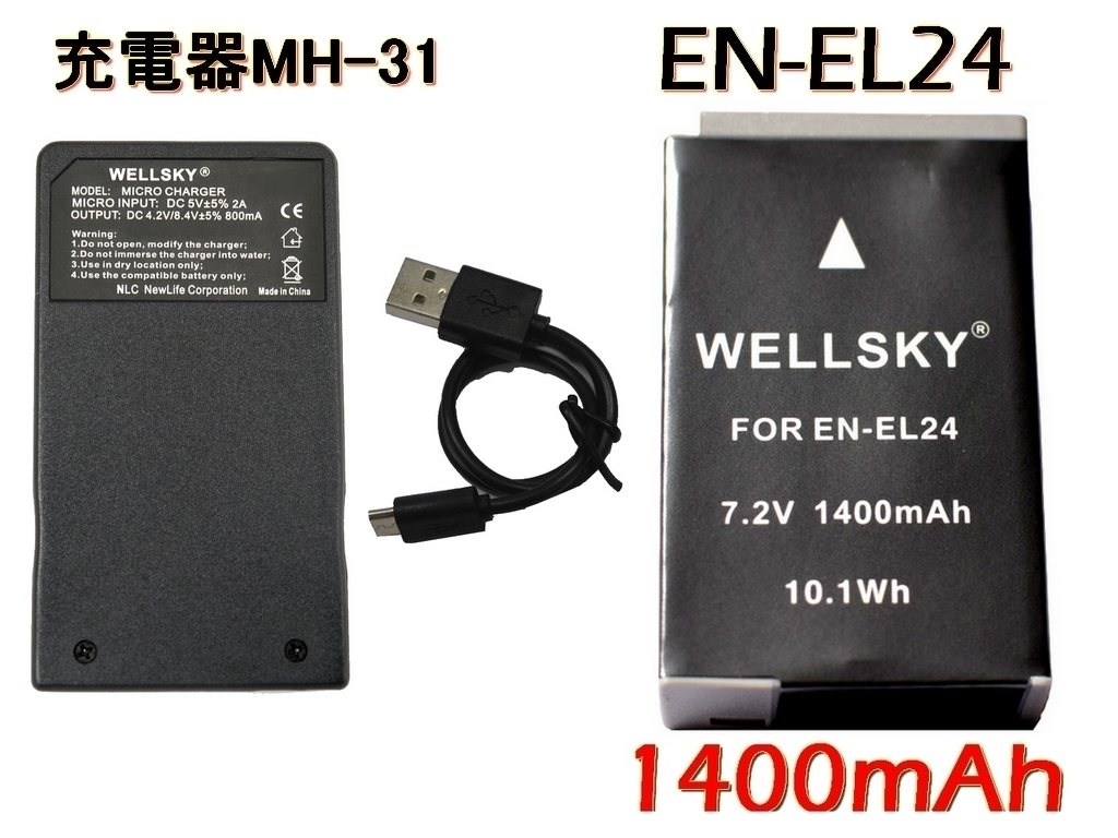EN-EL24 互換バッテリー 1400mAh 1個 + MH-31 Type-C USB 急速互換充電器 バッテリーチャージャー1個 ミラーレスカメラ ニコン Nikon 1 J5