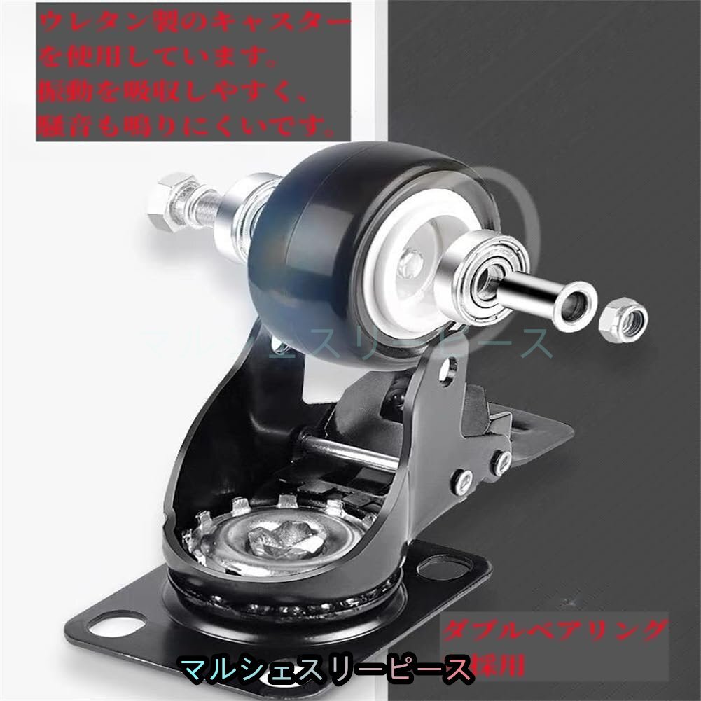 【ブレーキ機能付きの360°回転キャスター 】360度回転可能なキャスターを使用することで、動きがより安定し、方向を自由に変えることができます。ウレタン製のキャスターを使用しています、振動を吸収しやすく、騒音も鳴りにくいです。ブレーキ機能付きのキャスターは2つ、傾斜地や凹凸のある地面でもツールカートをしっかりと固定できます。