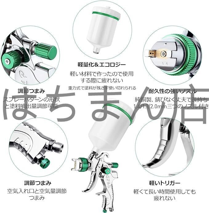 幅広い使い道:1.4mm/1.7mm/2.0mm口径のノズルはDIY、車やバイク、木工、金属、大物、壁などの塗装に適しています。セットには1.4mm/1.7mm/2.0mm三つのノズルが付きます。店舗をご確認ください:はちまん店、他の同デザインは全て海賊版でございます、品質は保証されていません、慎重に購入してください。