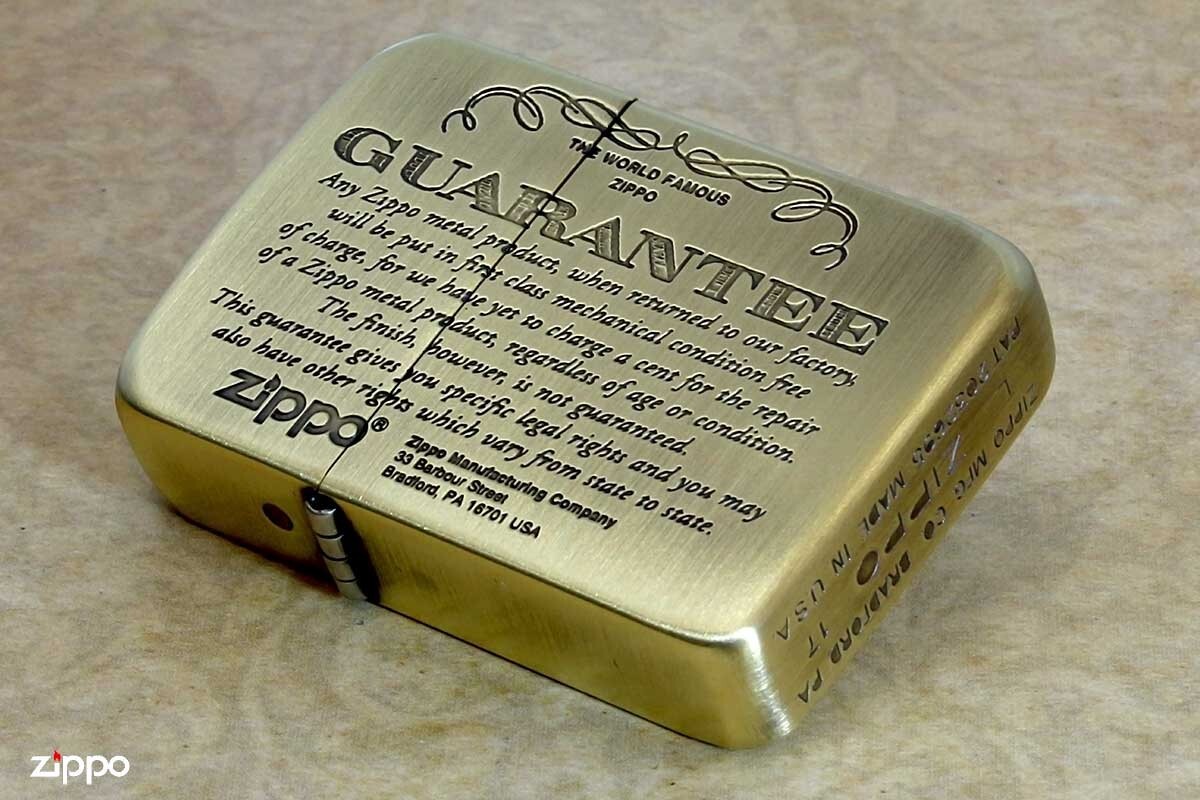 1941レプリカをベースに、ZIPPO社のギャランティ(永久保証書)を施したデザインです。「1941レプリカ」は、ラウンドコーナーモデルと呼ばれるZIPPO社40年代初期の名品の復刻版。四方が丸みを帯びた特徴的なデザインに、真鍮古美の落ち着きのある色合い。ZIPPOの永久保証サービスは、喫煙者なら誰もが知っているのでは?!贈り物にしても面白いですね。