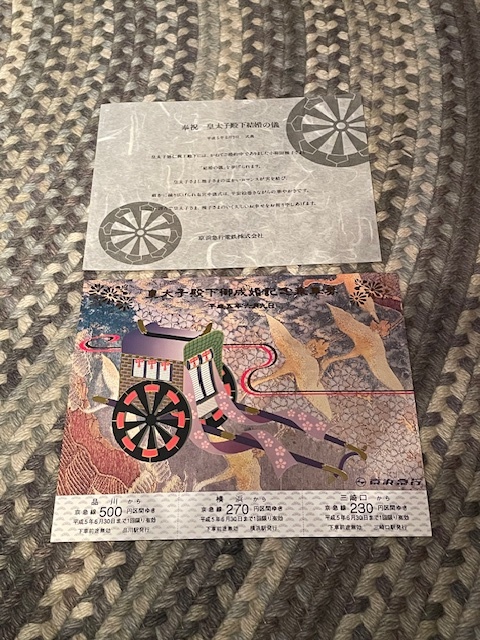 京浜急行 皇太子殿下御成婚 記念乗車券 (管理番号74-34)