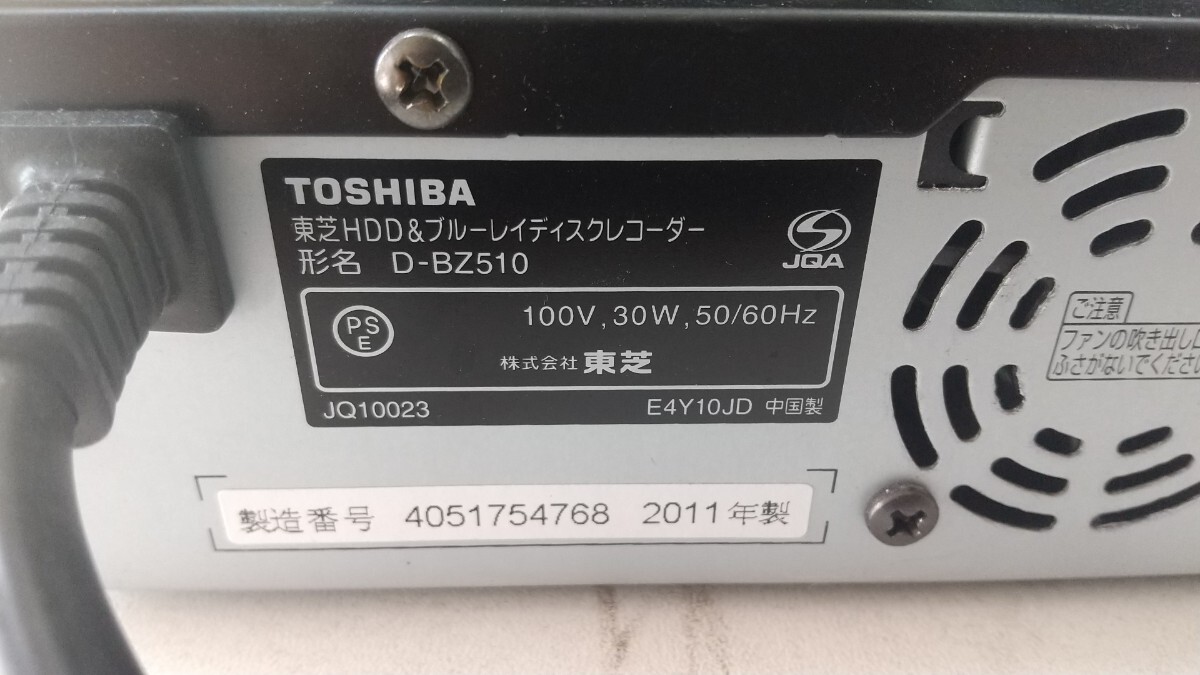 K1536 TOSHIBA REGZA D-BZ510 20011年製 ブルーレイレコーダー/東芝/レグザ 不動 不具合あり 現状品 JUNK