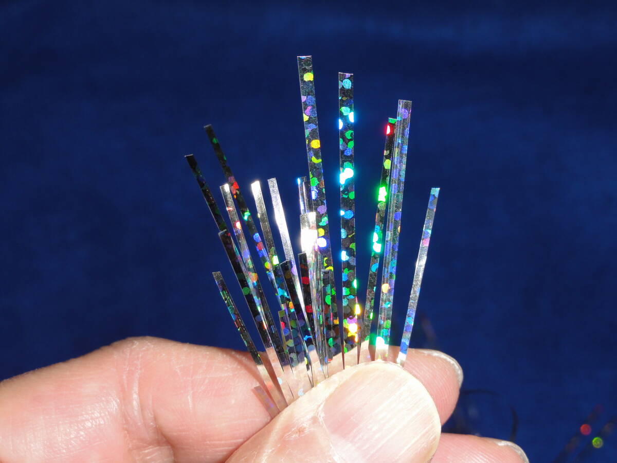 | ご覧頂きありがとうございます。 幅が1ミリのソルトウォーター用のフラッシャブーです。 ストリーマーのウイング材、フックシャンクに巻いてボディ材として使用します。 パールカラーはニンフのウイングケースやリブにも利用できます。 通常のフラッシャブーより硬いので、ミノーやサーフキャンディーなどの側線としても使用できます。 カラー:シルバー、ゴールド、パール パッケージの大きさ:シルバー、ゴールド→21×6センチ パール→23×6センチ マテリアルの長さ:シルバー、ゴールド→17センチ(2つ折りの状態で) パール→19センチ ※同日落札の商品に限り同梱発送致します。 | ||