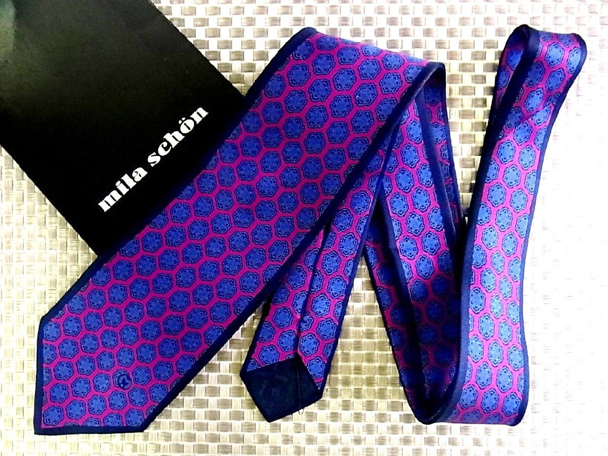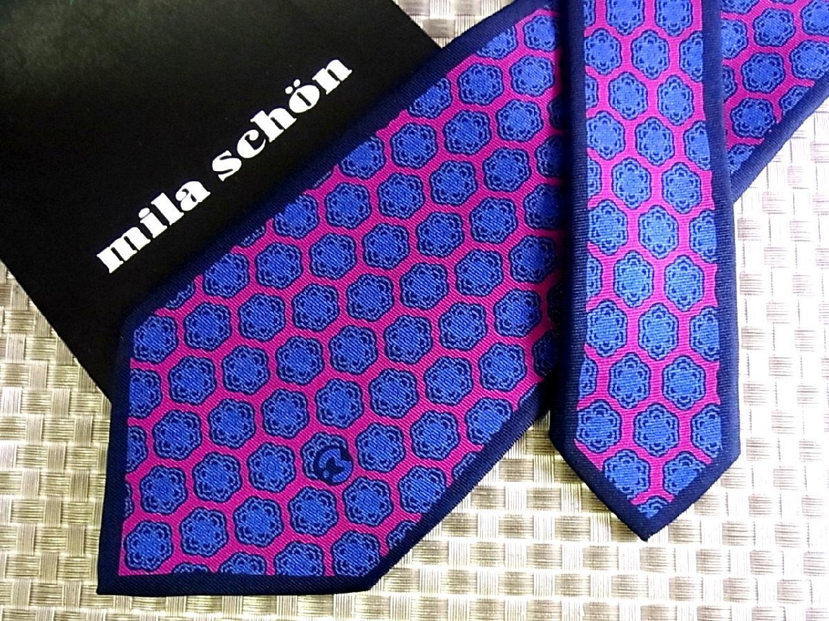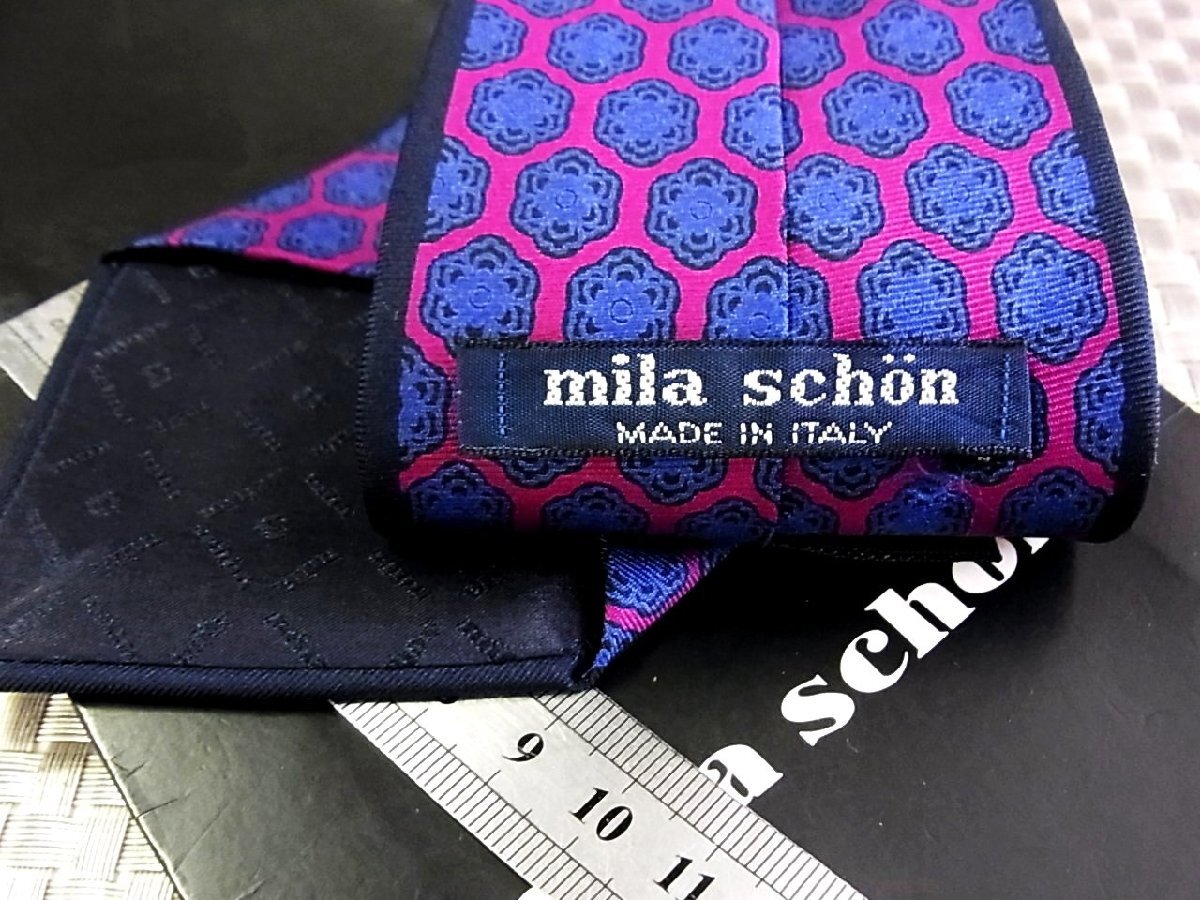 ★RB3285★【花 デザイン mロゴ 柄】ミラショーン【美品】ネクタイ