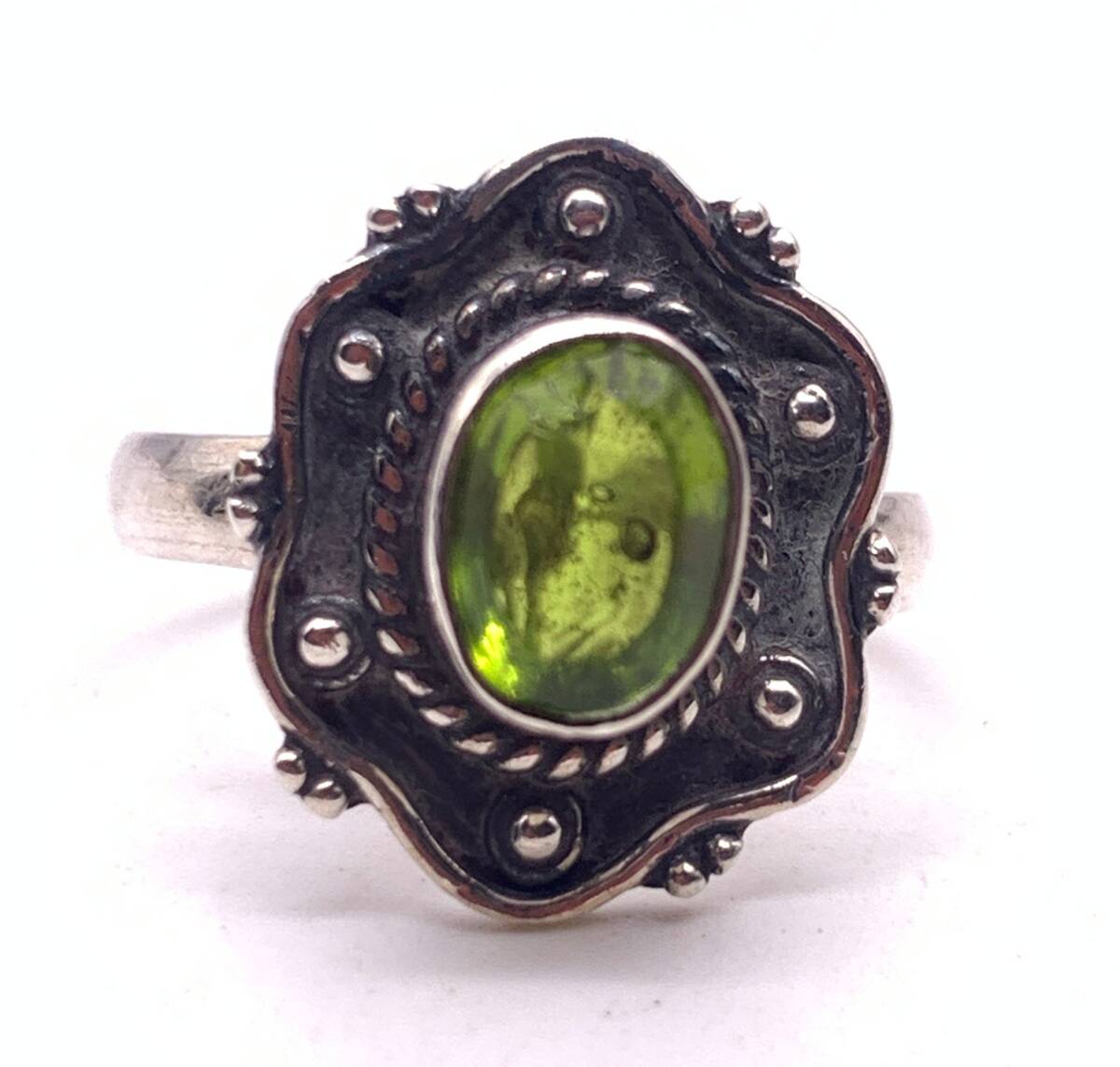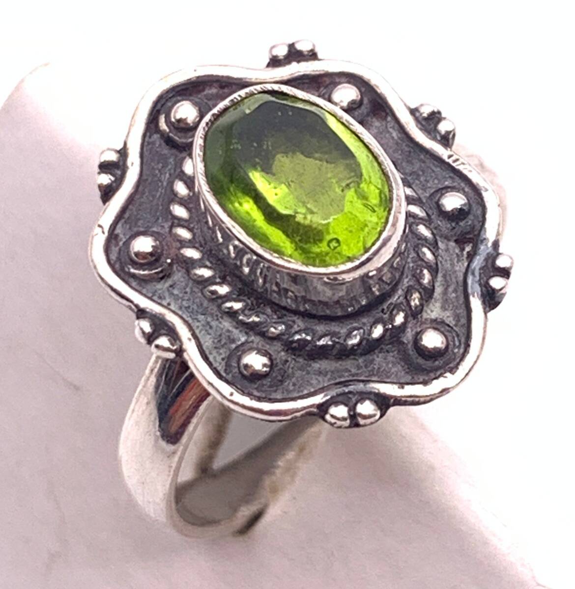 天然石ペリドット アンティーク風 silver925リンググ☆11.5号,13号