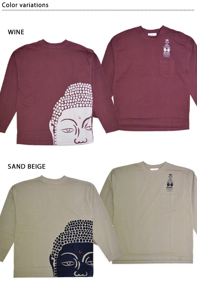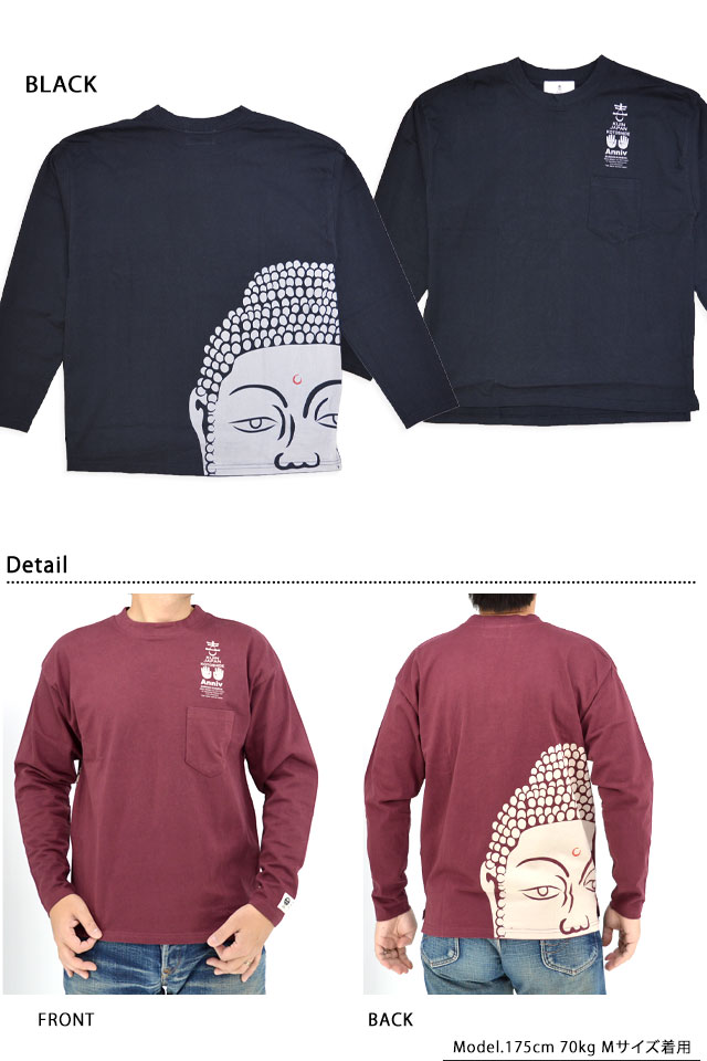着た人、それを見た人が笑顔になれる、他にはないデザインを提供し続けている「喜人」さんから「大仏ちょいデカポケ付きロングTシャツ(KJ-42107)」のご紹介です。 喜人10周年の中で、喜人を代表するデザインとして君臨する大仏様。 左胸には掌で10周年を表現している喜人らしいデザインが。 大仏様の優しい眼差しがあなたを、そして後ろにいる人までもお守りすること間違いなし! 左袖にはピスネームが付きます。 ポケット付きなので、なんか好きなの入れてください。 ボディーには、ちょいヘビーな度詰天竺を採用しています。 | ||||||||||||||||