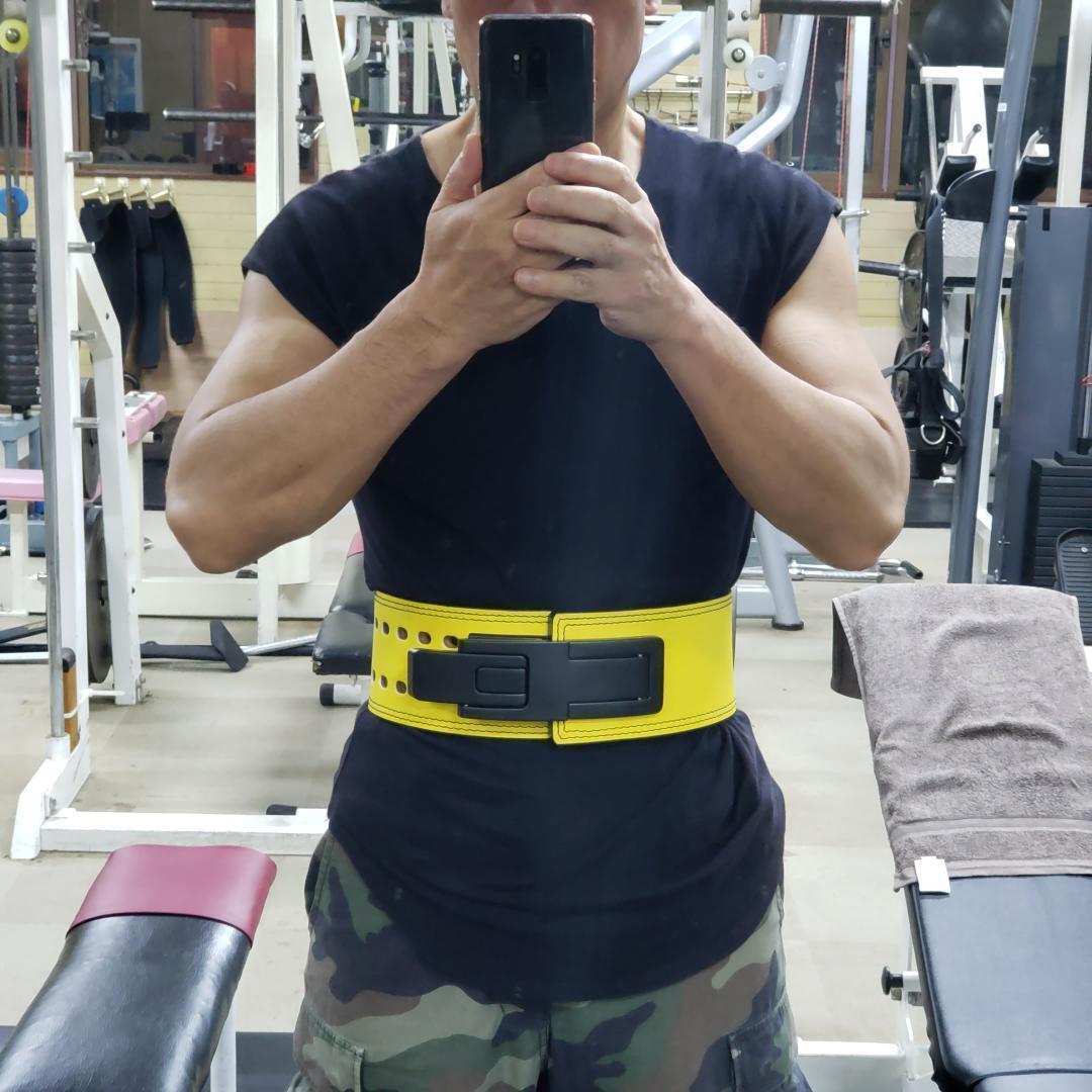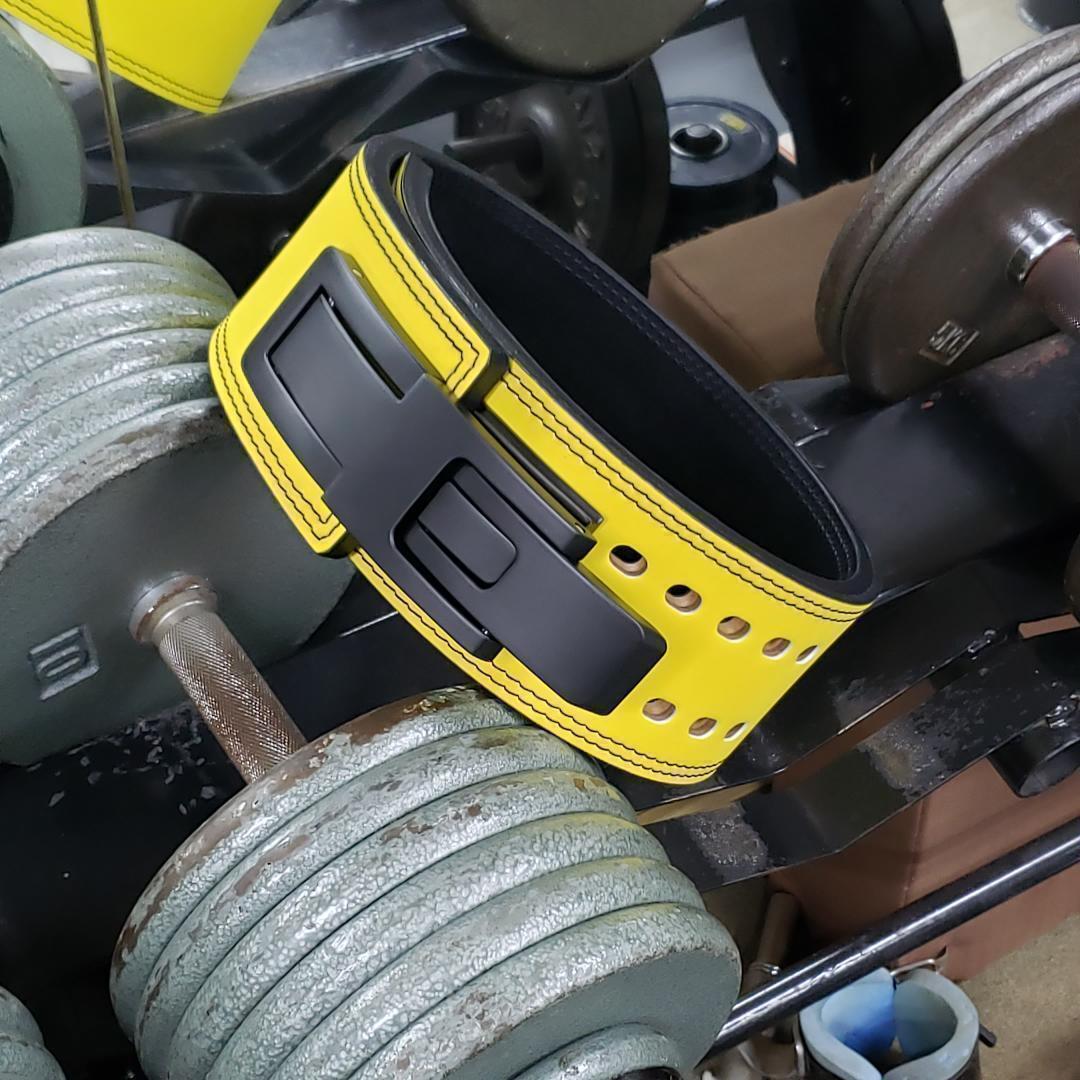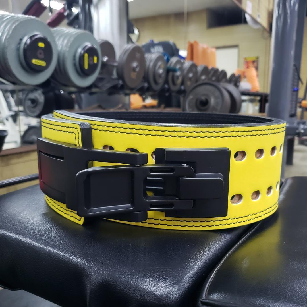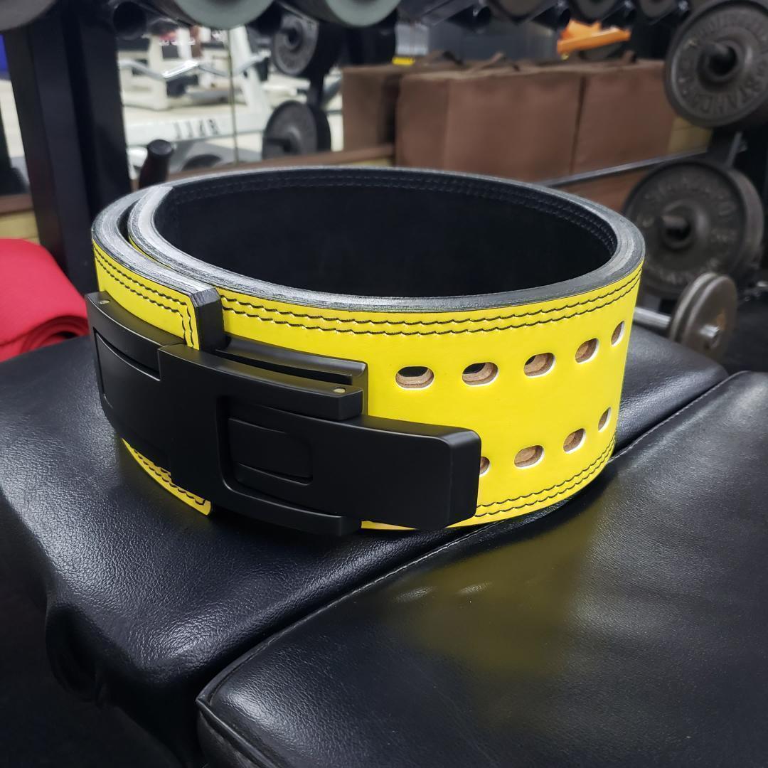 レバーアクションによりワンタッチで着脱締め付け可能なトレーニングベルトになります。