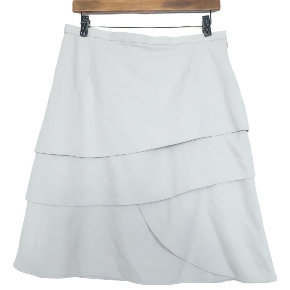 商品説明 | 【実寸約】 ウエスト78 丈57(cm) 【サイズ表記】 44 【素材】 ポリエステル73 レーヨン21 ポリウレタン6 【状態】 普通の使用感があるお品物 極わずかな引っ掛け少々あり。 【デザイン】 アイボリー系 ストレッチ性あるサラリとした爽やかな素材感が魅力のスカートです。 花びらを重ねたような女性らしいシルエットです。 合わせやすいカラーと着回し力抜群のデザインで、様々な大人フェミニンスタイルに重宝する優秀アイテムです。 裏地付き、サイドファスナー仕様。 |