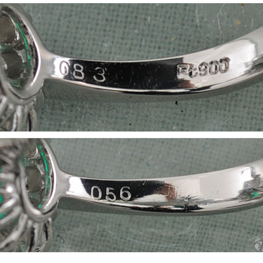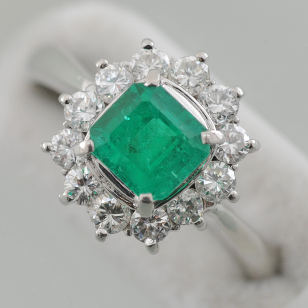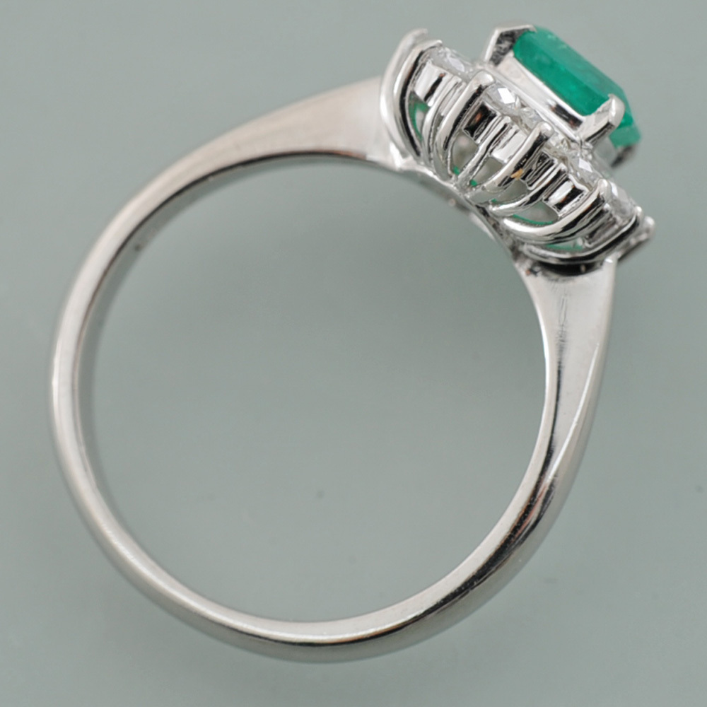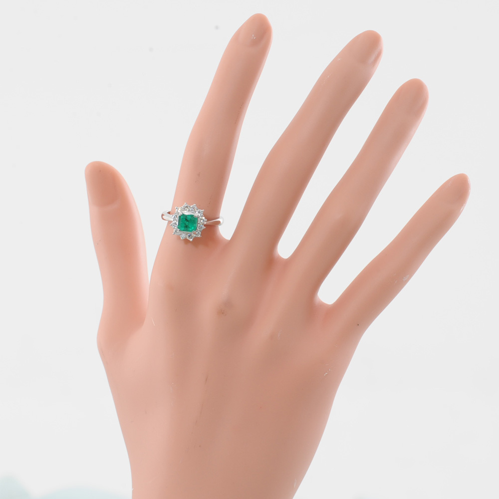 ● 材質:プラチナ900、エメラルド1石(スクエアエメラルドカット)、取り巻きダイヤ12石
