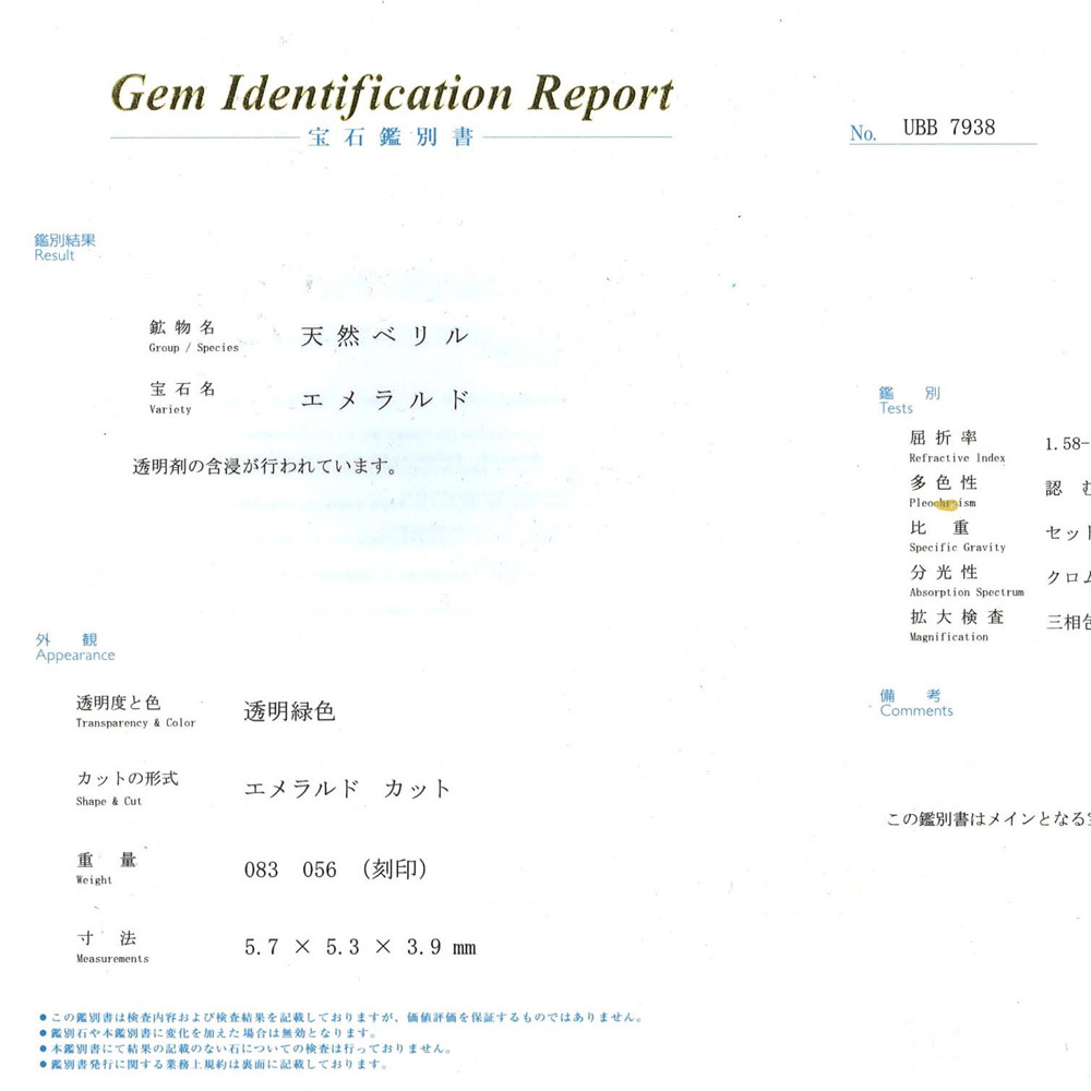 ● 付属品:鑑別書(エメラルド、天然ベリル、中央宝石研究所)のみ