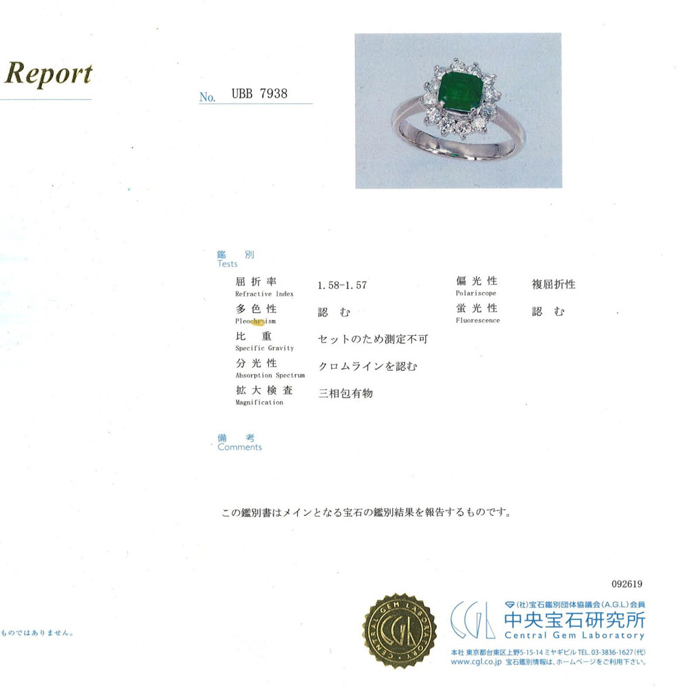 ● 【E28】 Pt900 プラチナ 天然エメラルド 0.83ct ダイヤモンド 0.56ct デザイン リング 指輪 中古品仕上げ済み 鑑別書付き