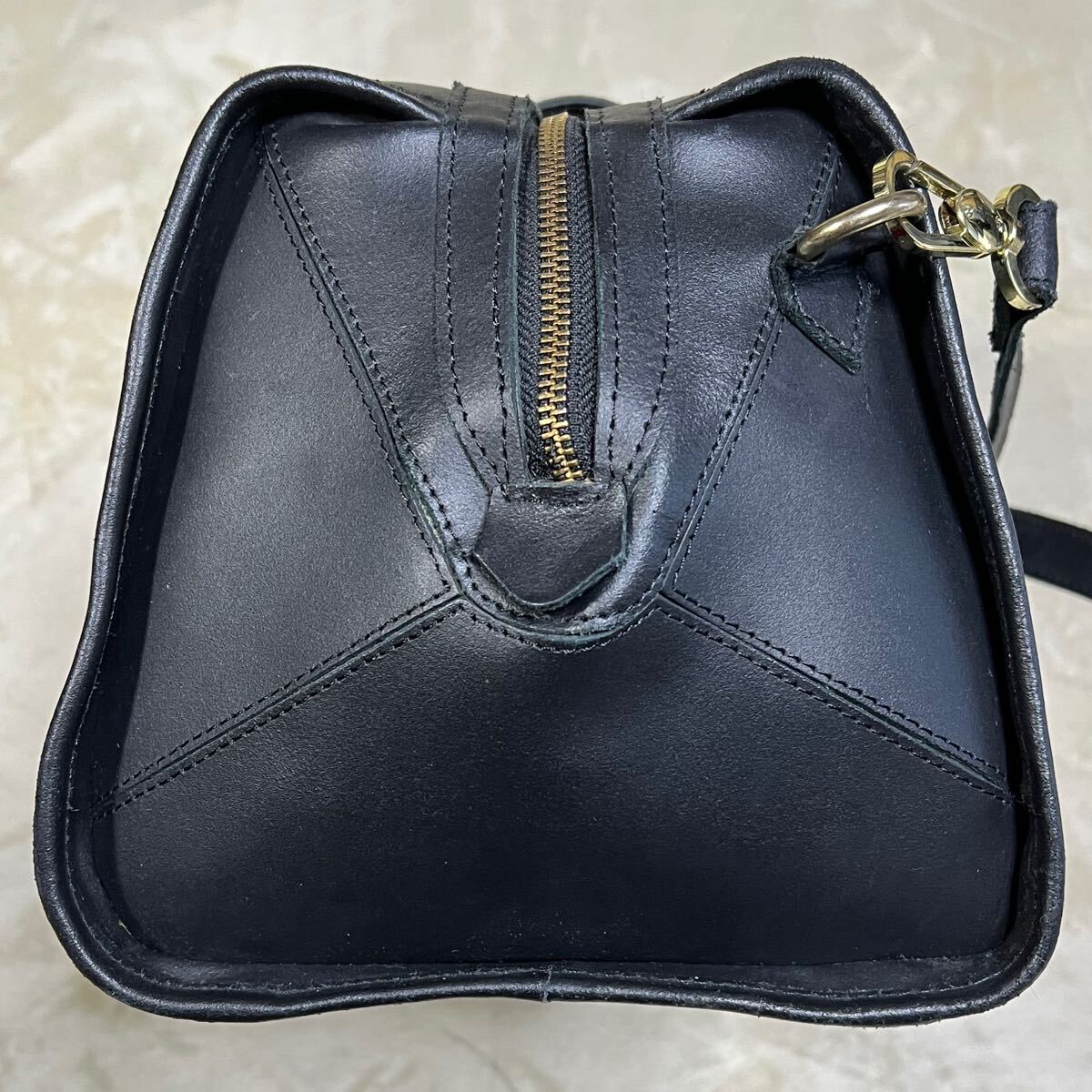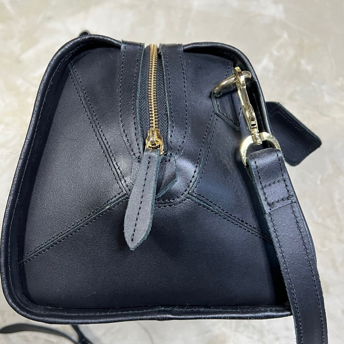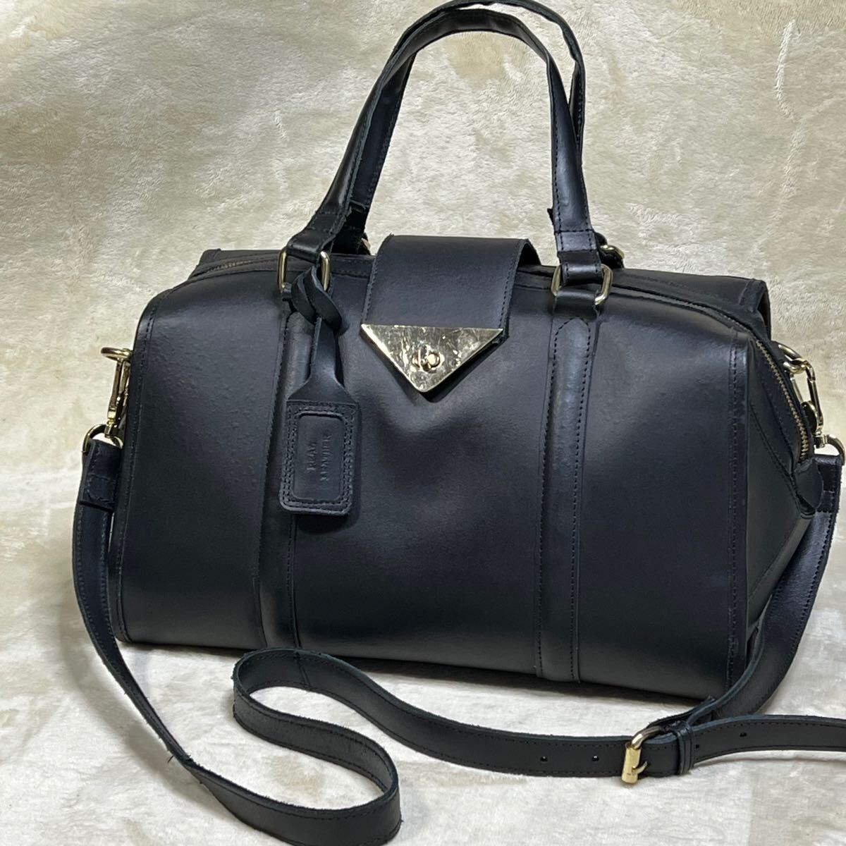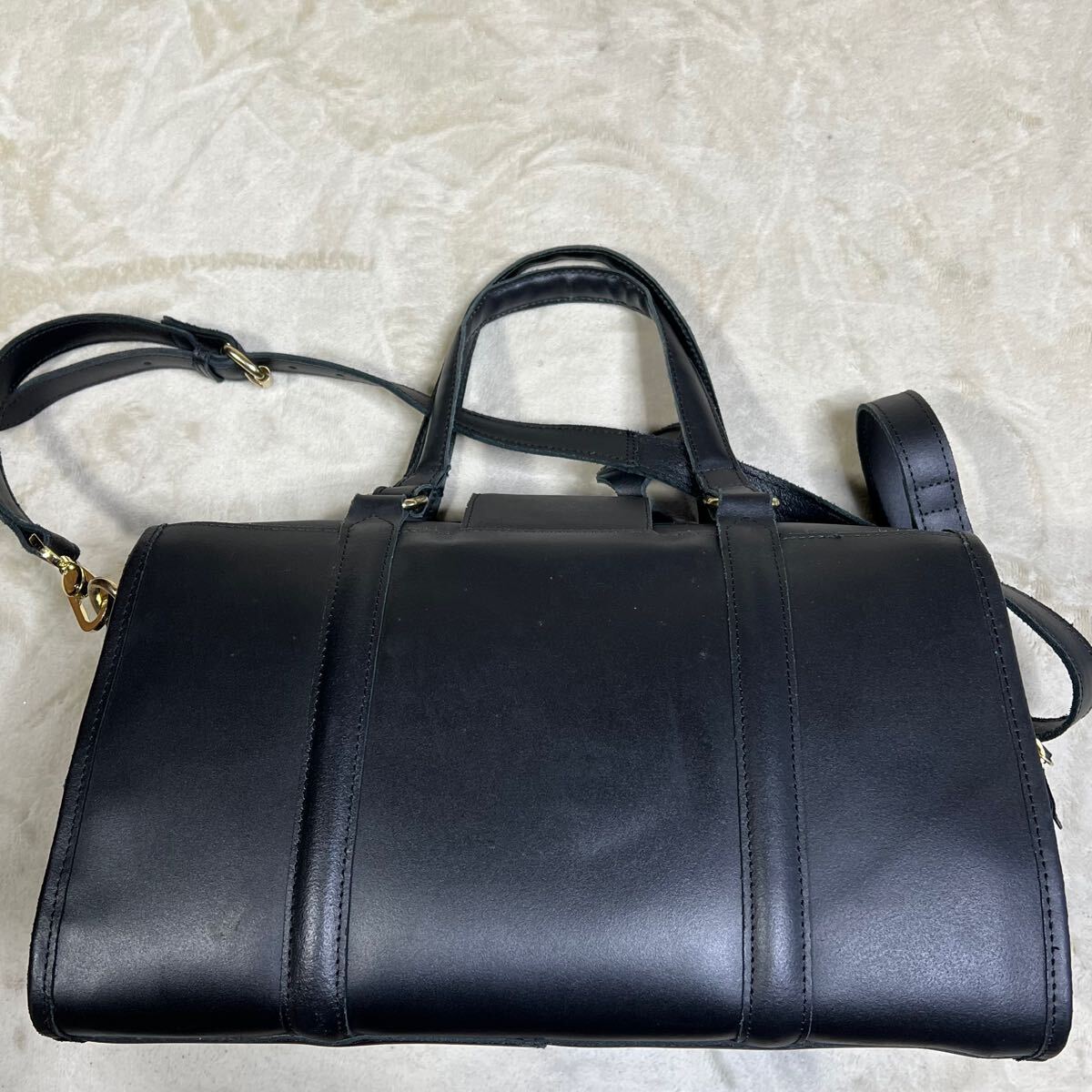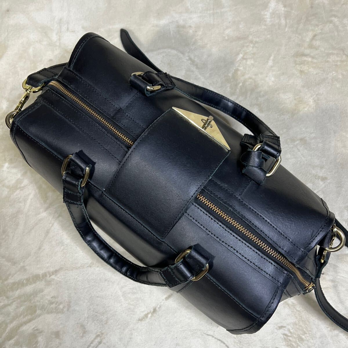 ● TOP SHOP トップショップ リアルレザー 本革 ショルダーバッグ ボストンバッグ ブラック 旅行カバン 出張 年末帰省 2way 男女兼用