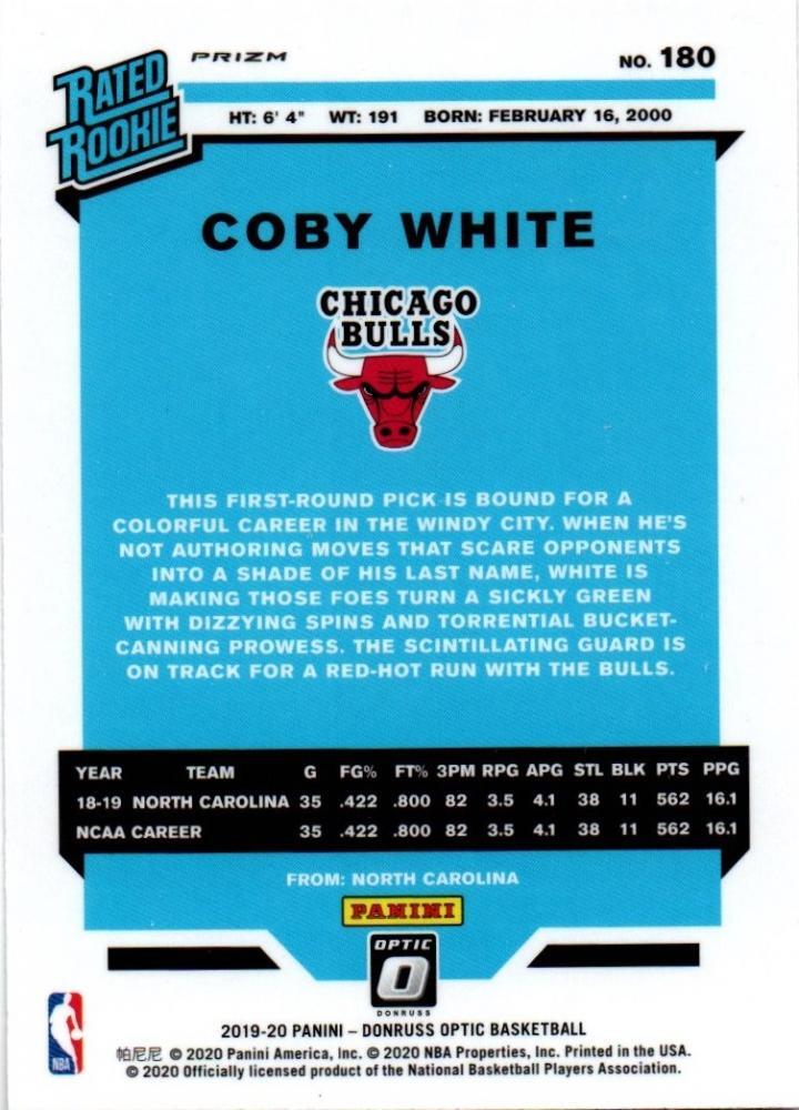 【COBY WHITE(Chicago Bulls)】2019-20 DONRUSS Optic Holo #180