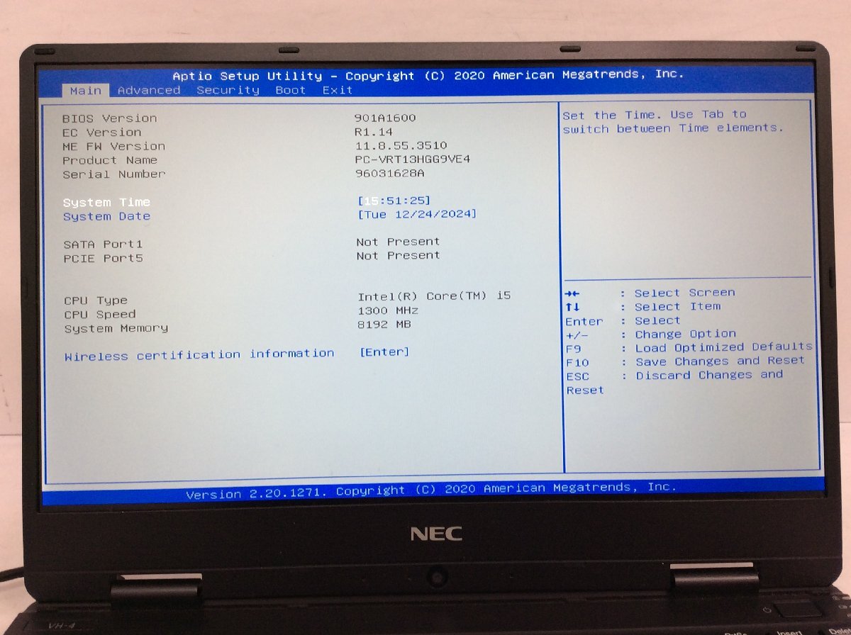 ジャンク/ NEC PC-VRT13HGG9VE4 Intel Core i5-8200Y メモリ8.19GB ストレージ無し 【K05697】