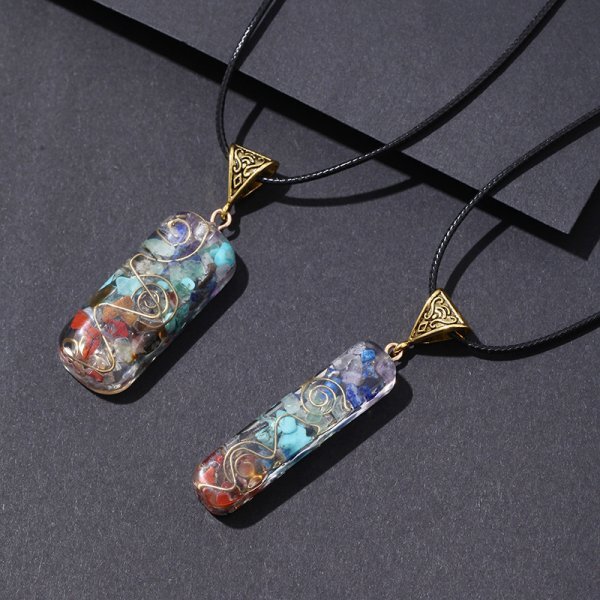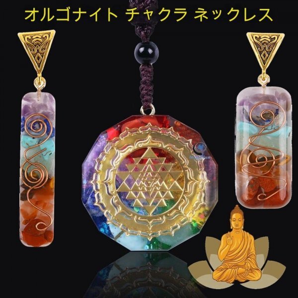 【新品】オルゴナイト 7チャクラ 天然石ペンダント ネックレス◆電磁波 アメジスト ラピスラズリ ターコイズ アベンチュリン シトリン | |||