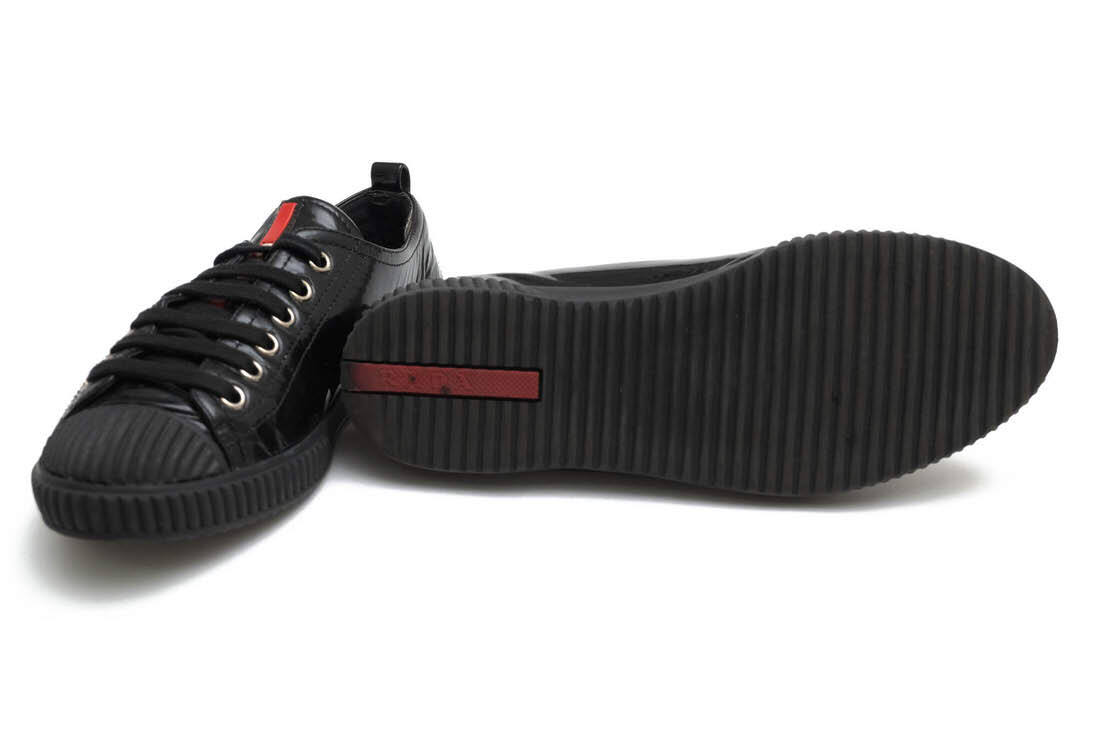| 光沢のあるパテントレザーを使用した高級感溢れるデザインのPRADAのローカットスニーカー。フロントにはプラダ独特のブランドカラーを配したタブをデザイン。インソールに、お馴染みのレッドラバーロゴを配置したハイセンスなモデルです。 |