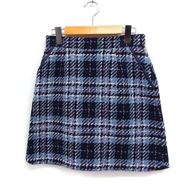 リランドチュール Rirandture ツイード 台形 スカート ミニ チェック 2 ネイビー 紺 /FT32 レディース