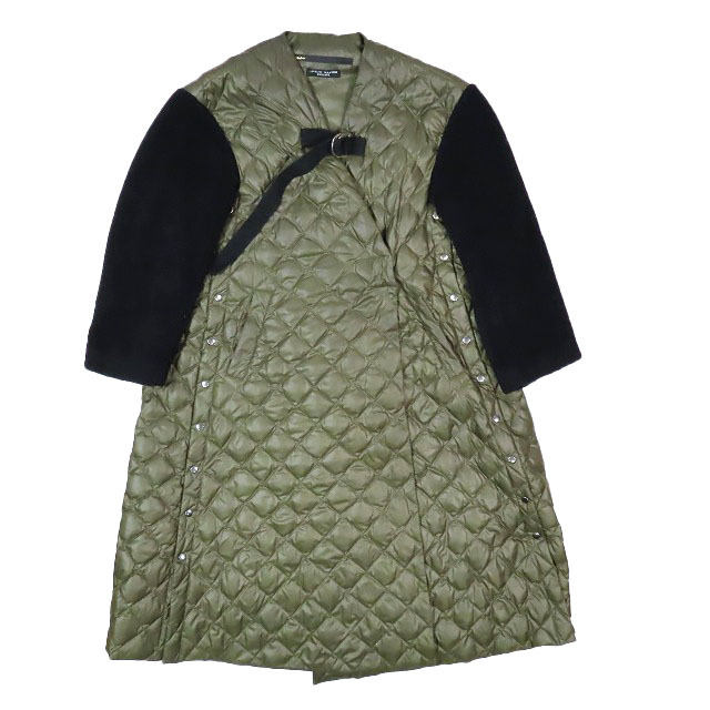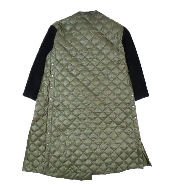 ミュラー オブ ヨシオクボ muller of yoshiokubo 袖切替 ニット袖 ダウンコート キルティング ロング アウター カーキ 36 レディースYBA10