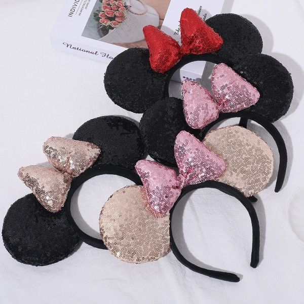 可愛い マウスのミミ カチューシャ リボン スパンコール ヘアバンド アクセサリー コスプレ パーティー ブラック Z198!送料無料!