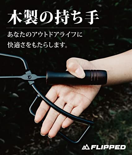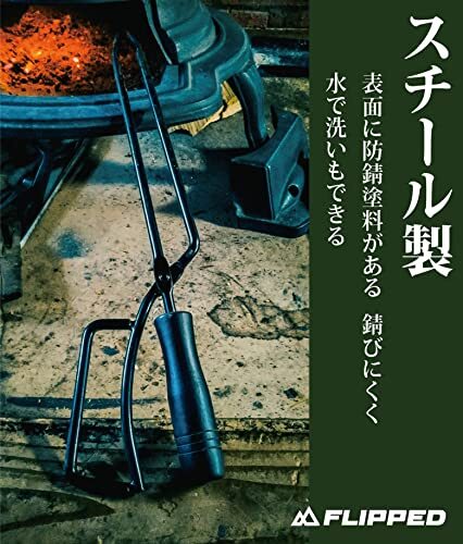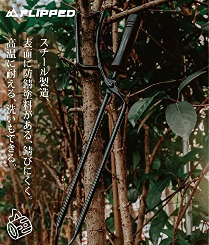 「FLIPPED 焚き火トング 炭トング 薪ハサミ 薪ばさみ 木製ハンドル ファイヤープレーストング バーベキュー 薪トング 炭バサミ スチール製」▼▼(商品説明)・Black FL-0012・【サイズ】(約):L405mmx115mmx30mm【重量】(約):400g・【材質】本体:スチール、ハンドル:ウッド・【特徴】木製ハンドルは丈夫で手に馴染みやすく、握りやすく、手のサイズも楽に操作できます。 長いアヒル口クリップ、滑り止め内フックの設計、摩擦力が大きく、滑り止めと同時に、グリップ力がもっと強くなります。・【安全】太い鉄製、長持ち、耐摩耗、使用寿命が長い。「安定感十分」全長42センチ、総重量390グラムと、普通の火突き程度の重さ。また、重量感があるので、火の大きさを調節するだけでワクワクします。また、クリップの先端部分に粗い加工が施されており、しっかりと柴を握ることができるため、重い柴でも落ちる心配がない。