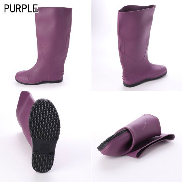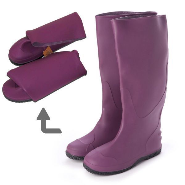 新品 レインブーツ 26.5cm - 27.0cm パープル パッカブル 折り畳み 折りたたみ 丸めて収納 携帯 長靴 雨靴 防滑底 防災 メンズ 19044