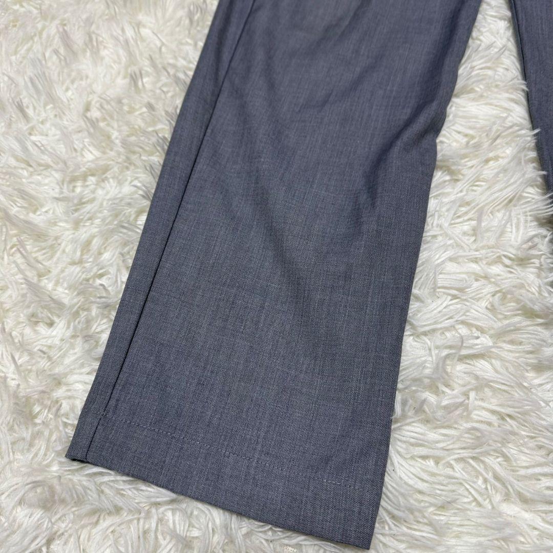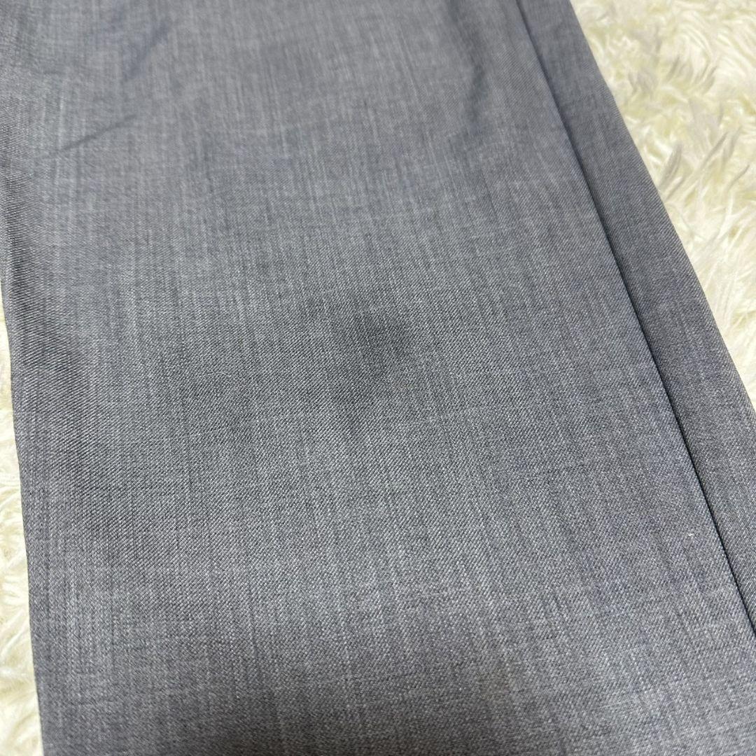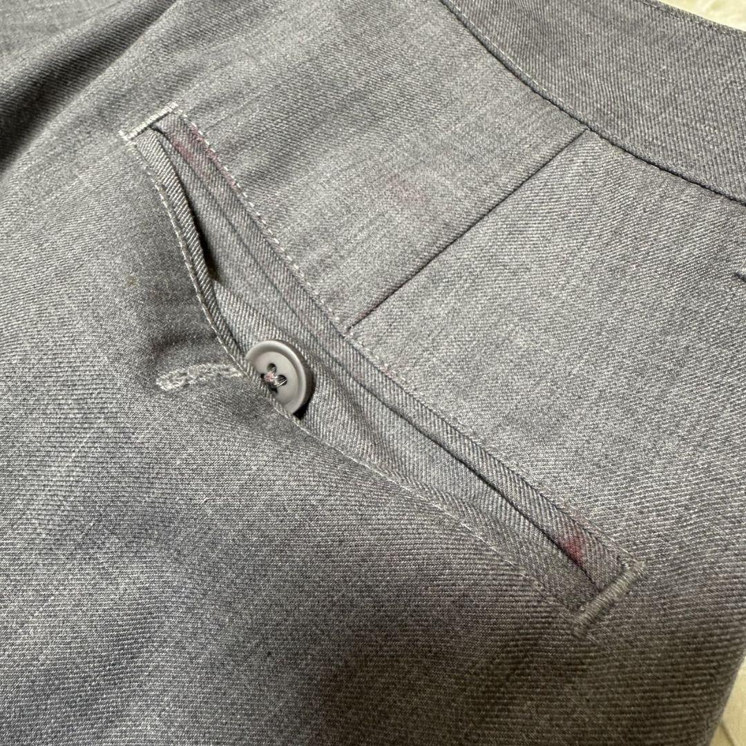 このスラックスは、シンプルでありながら洗練されたグレーの色合いが特徴です。ビジネスシーンやカジュアルな場面でも活躍するアイテムです。