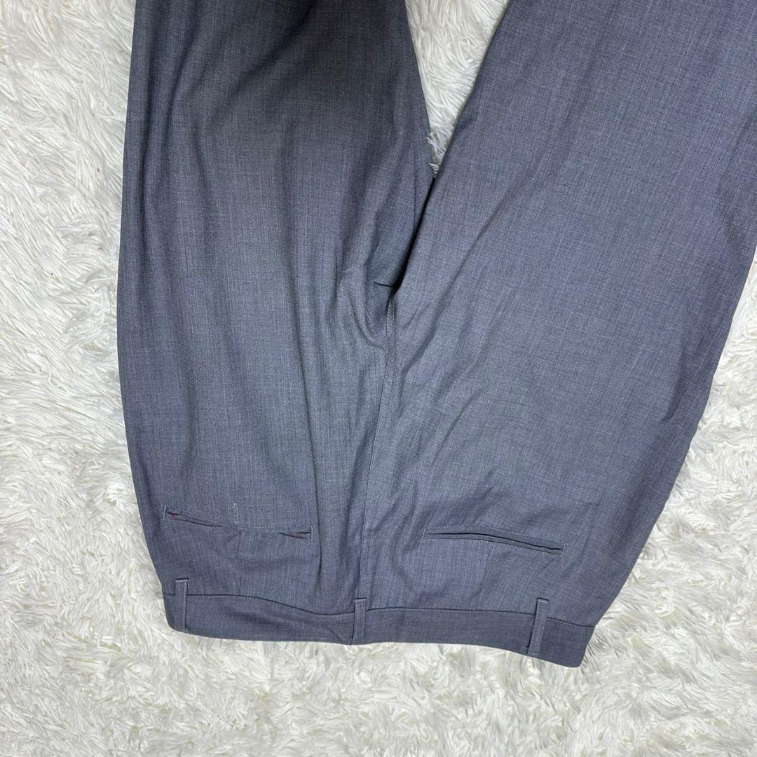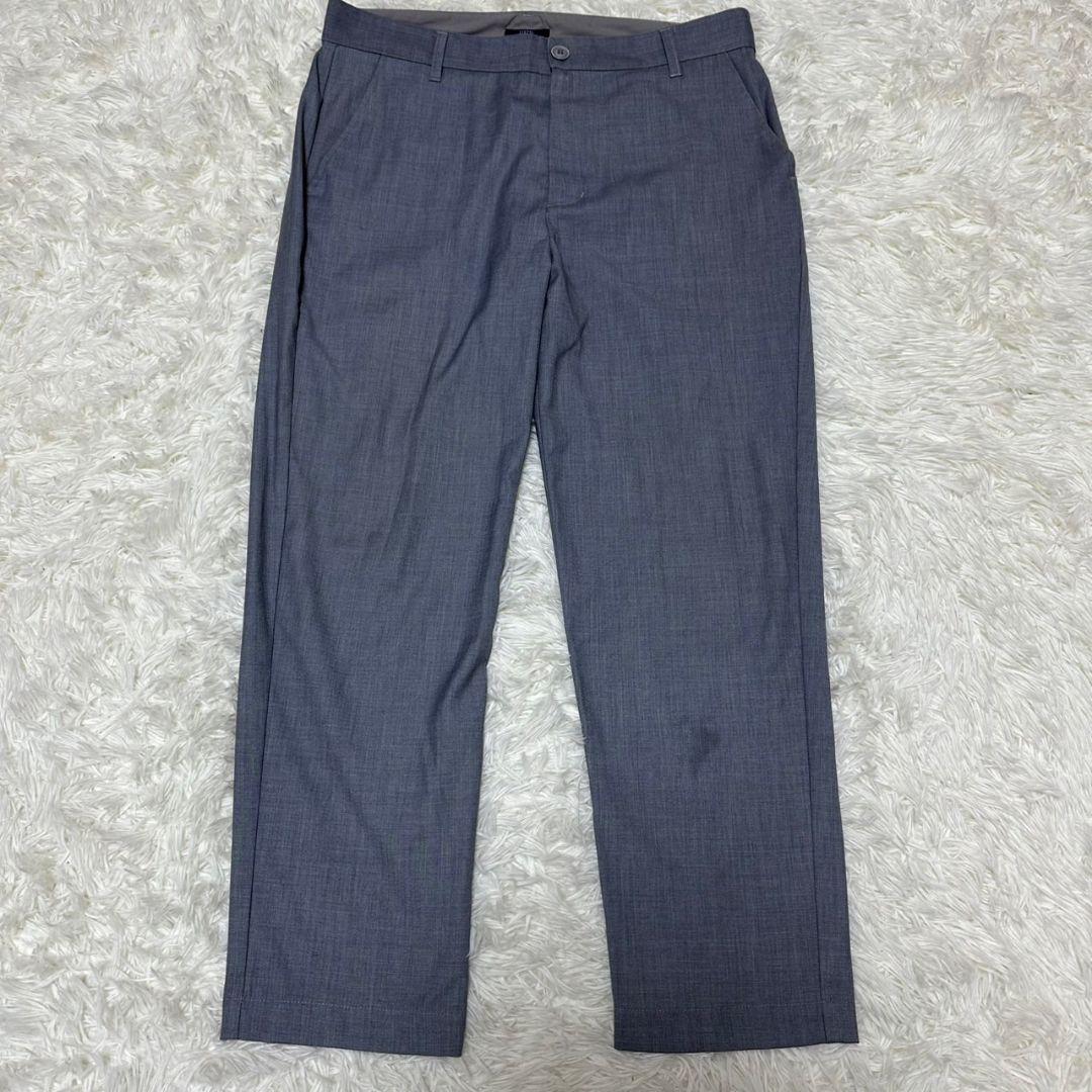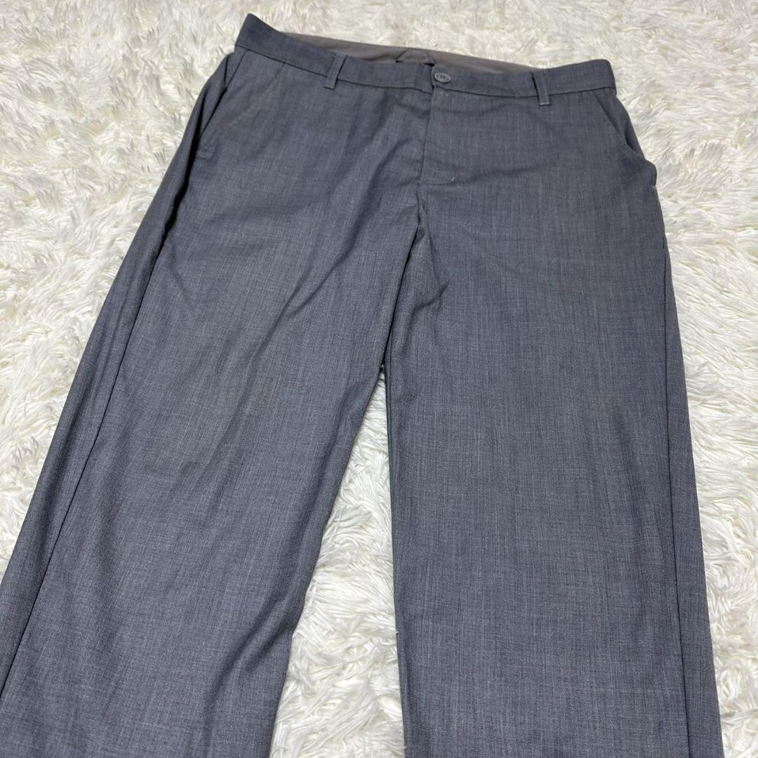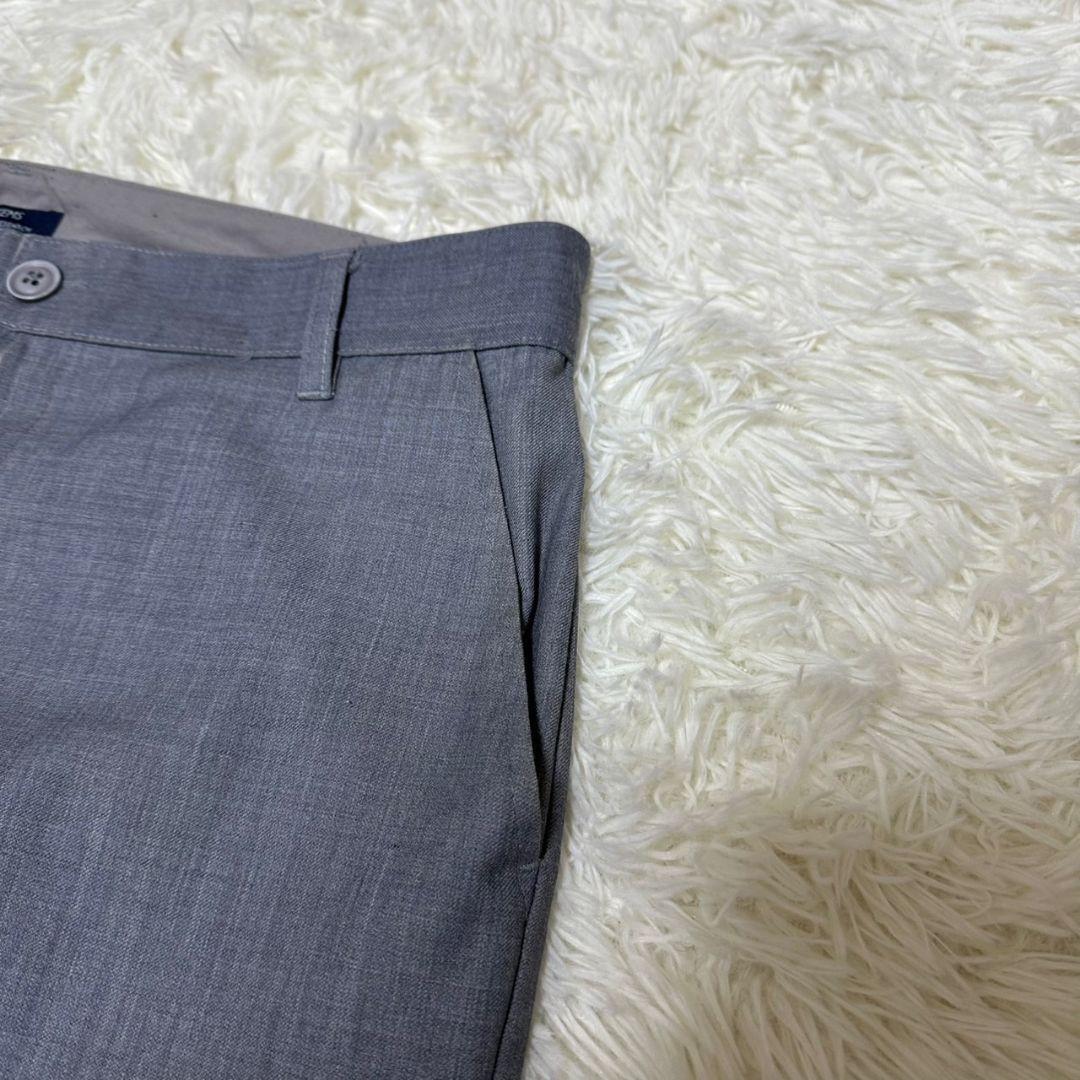 このスラックスは、シンプルでありながら洗練されたグレーの色合いが特徴です。ビジネスシーンやカジュアルな場面でも活躍するアイテムです。