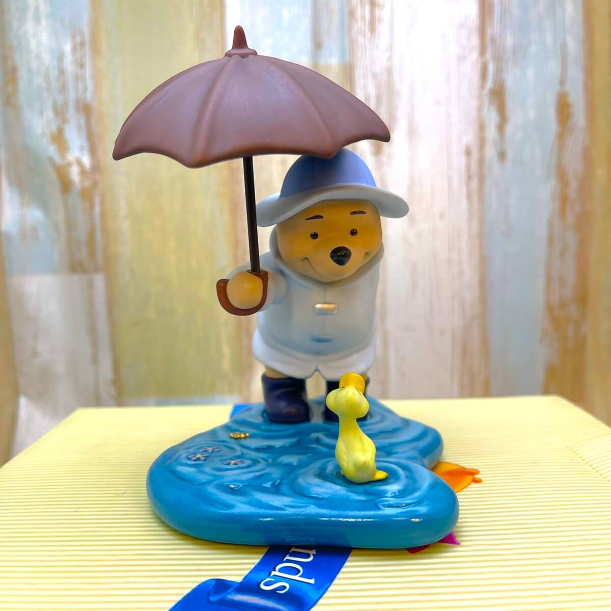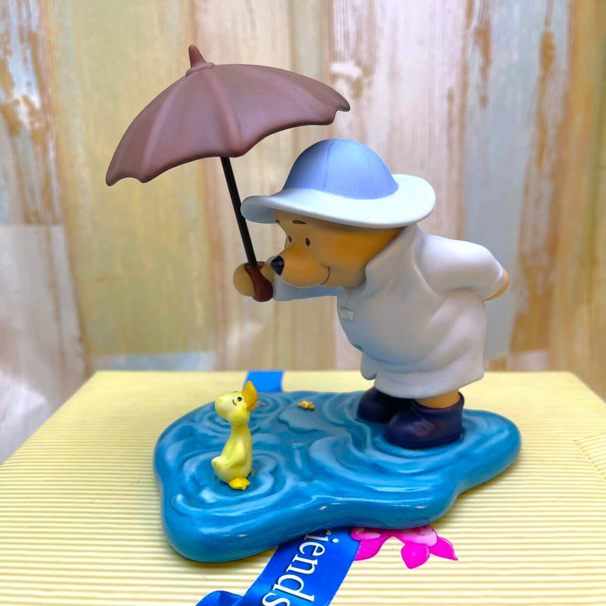 レア★くまのプーさん Winnie the Pooh 傘とアヒル 雨の日 Pooh&Friend 陶器制 フィギュア ★ディズニー Disney TDL