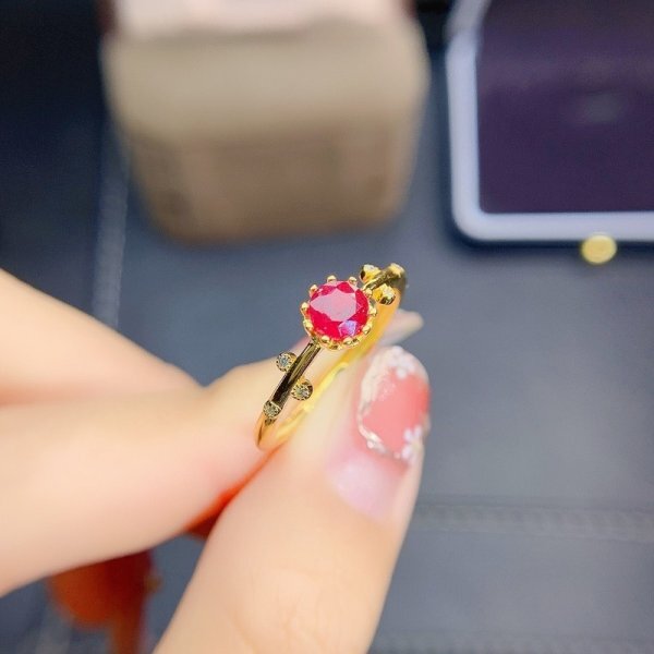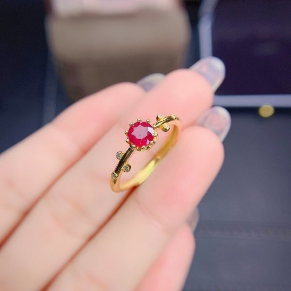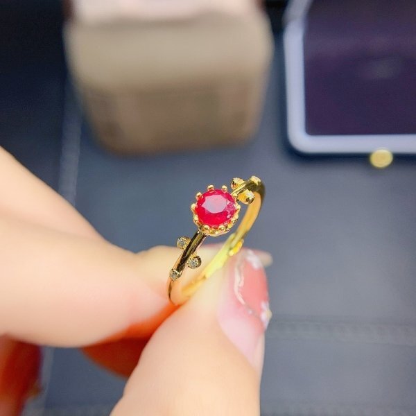 天然ルビーリング 、5×5mm、925シルバー、18K ゴールドメッキ、女性ギフト用