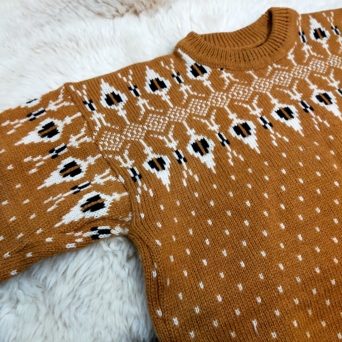 カラーはブラウン、マスタード系、バーズアイ、ノルディック柄の総柄デザインになっています。