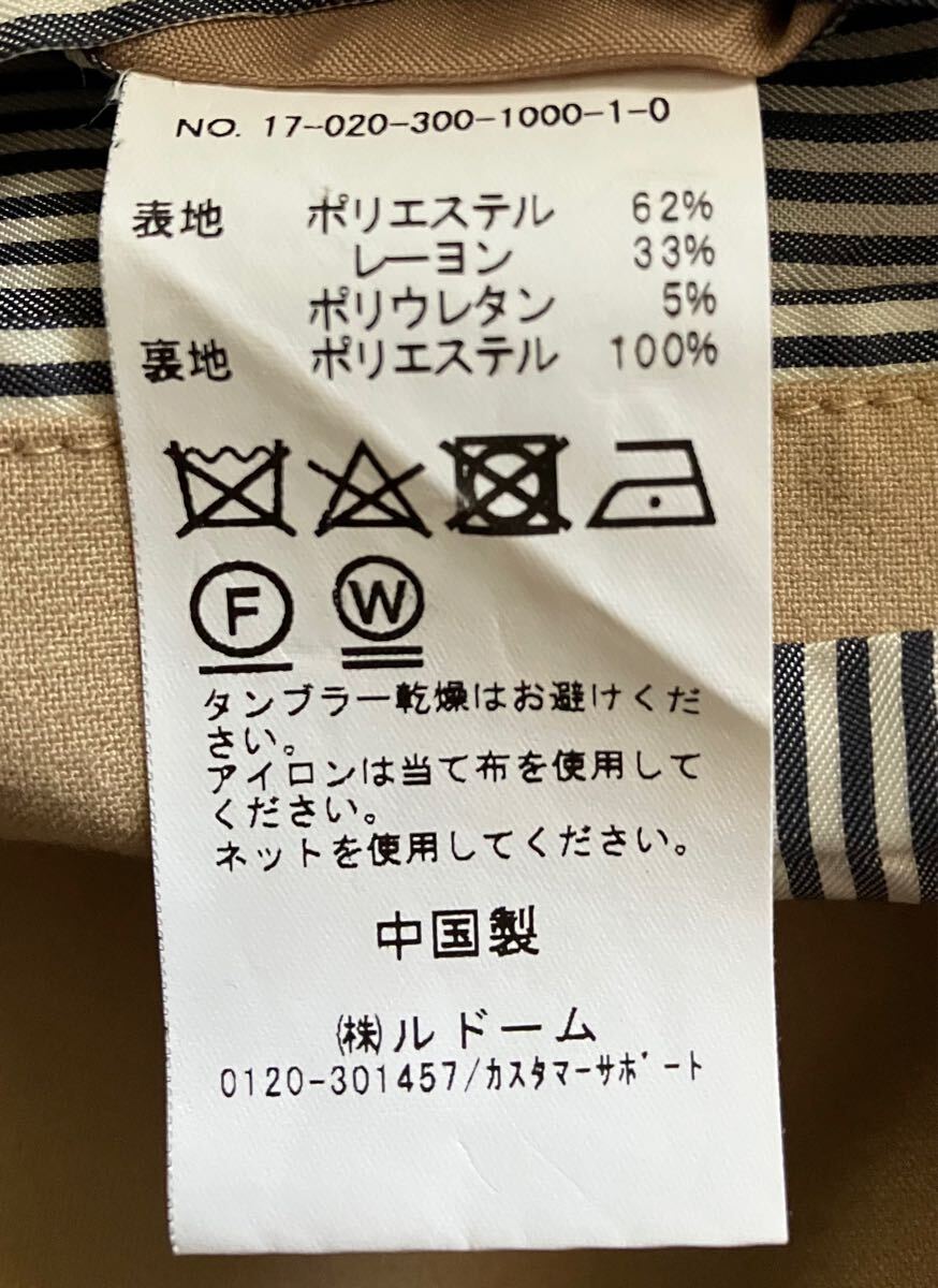 素材はポリエステル62%レーヨン33%ポリウレタン5%