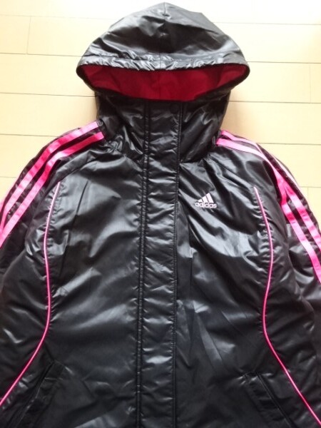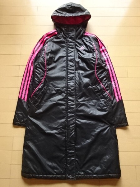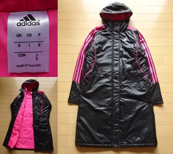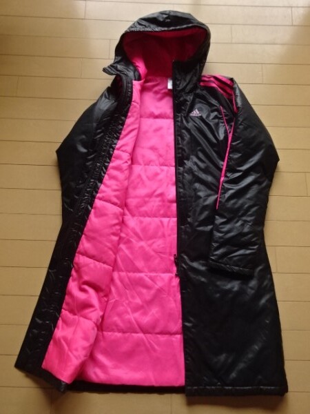 【adidas】中綿入り ベンチコート ブラック×ピンク SIZE:SMALL (アディダス)