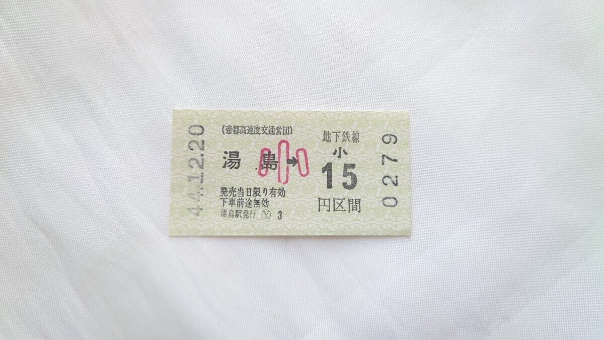 ▼帝都高速度交通営団・地下鉄千代田線開業初日▼湯島→15円区間小児乗車券▼券売機券昭和44年