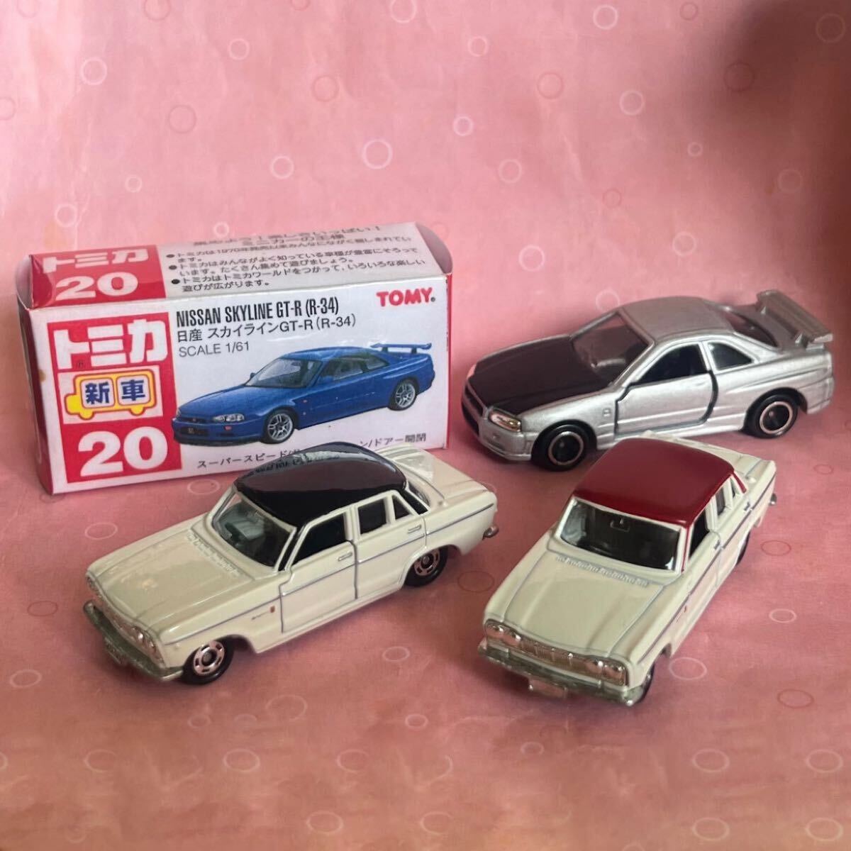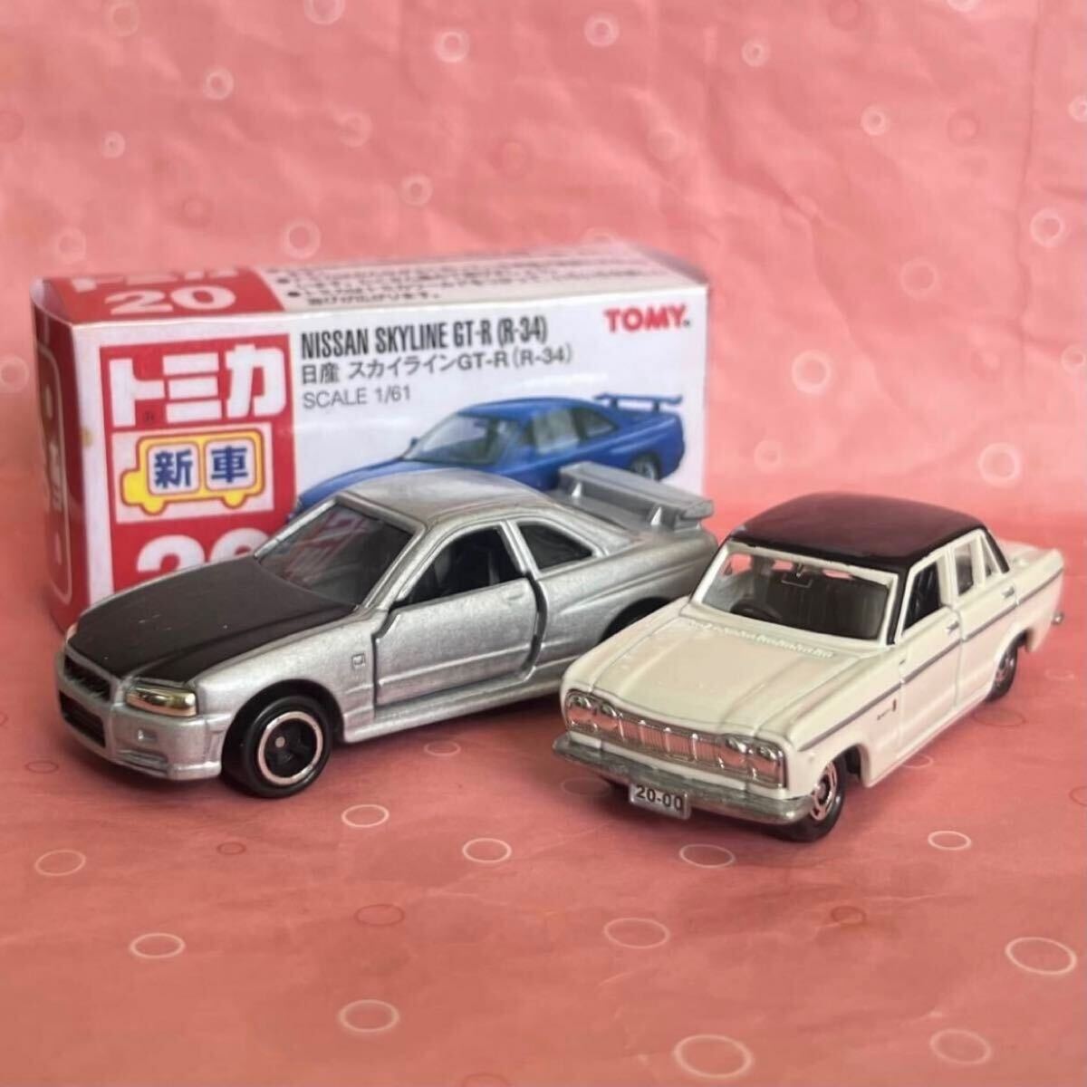 既に絶版モデルです。GT-Bの茶ルーフはギフト品あこがれの名車伝説、黒ルーフは50周年記念品、R34はトミカ缶の付属品。