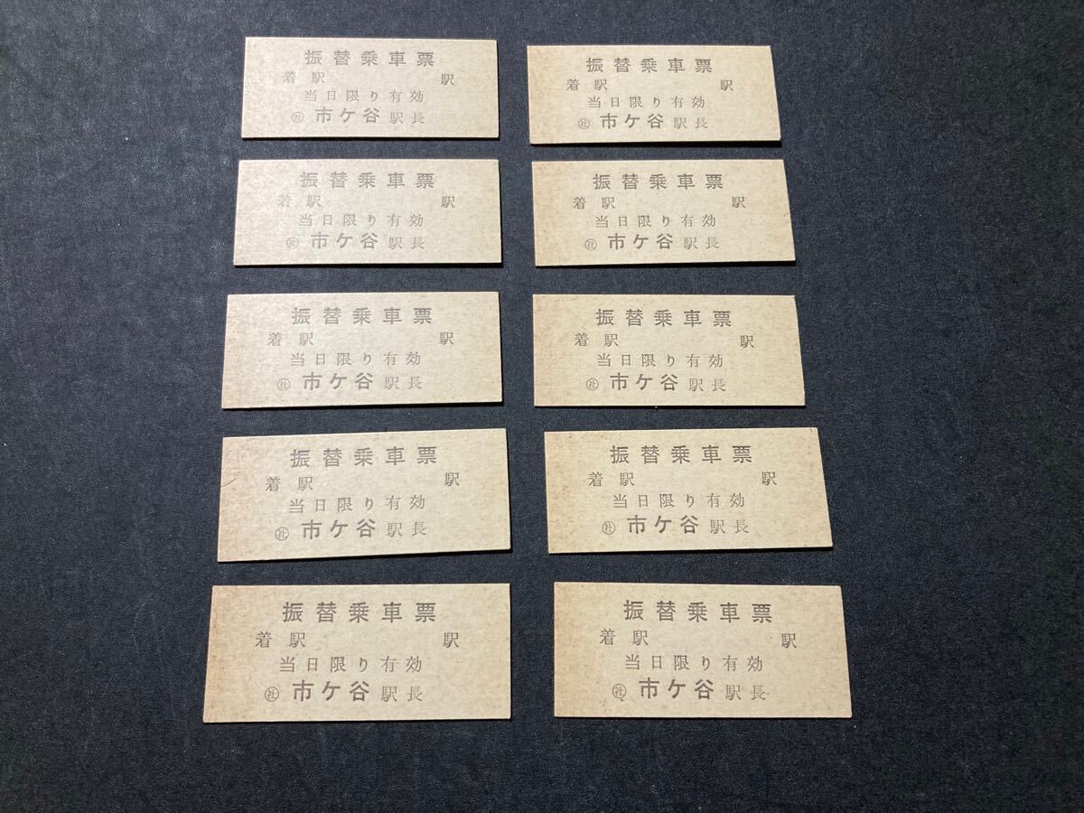 ◆営団地下鉄? ◯社 振替乗車票 市ヶ谷駅 未使用 8430〜8439 連番 10枚セット 鉄道 硬券 切符◆