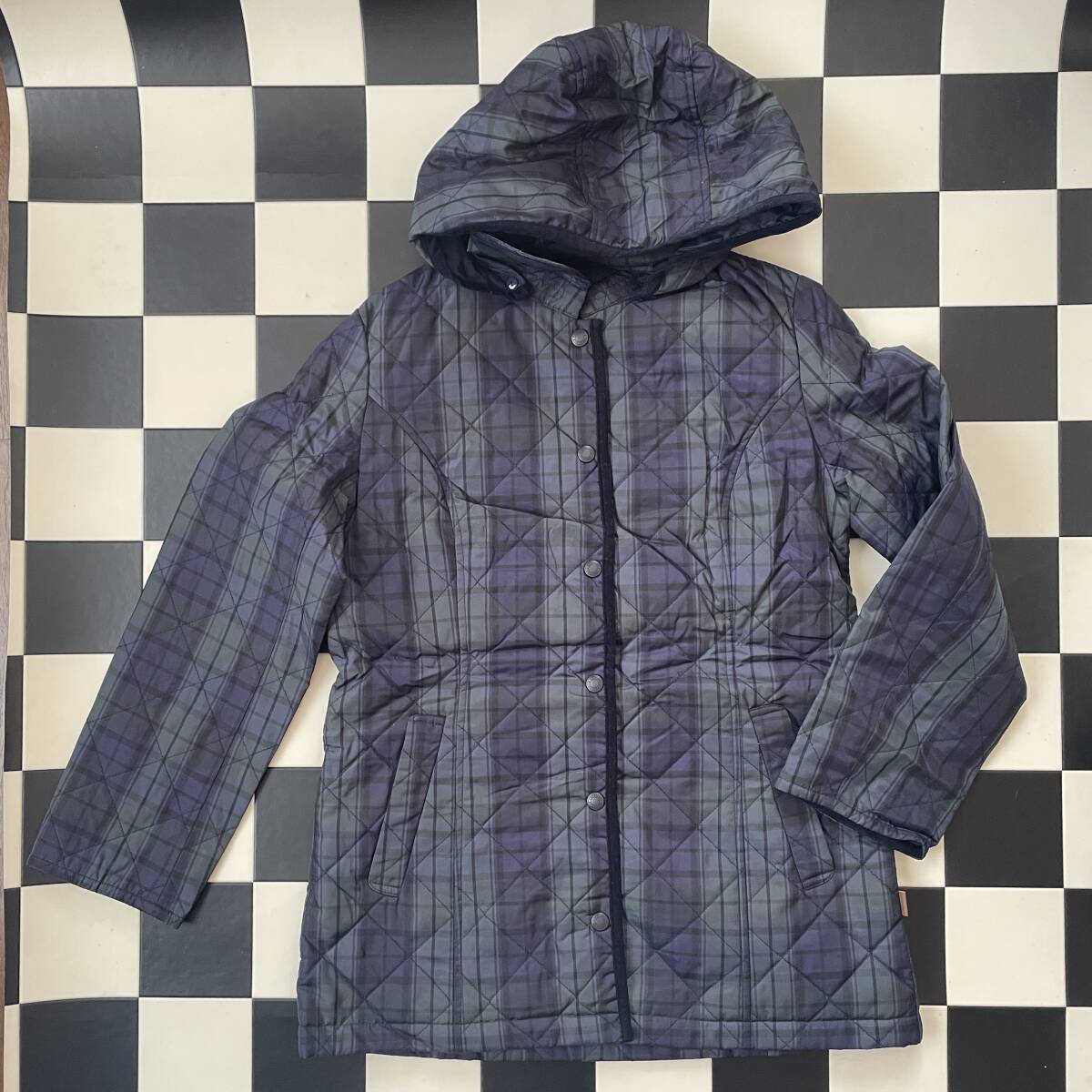 クロコダイル キルティング中綿フードジャケット サイズM Y5117 チェック 紺緑 レターパックプラス