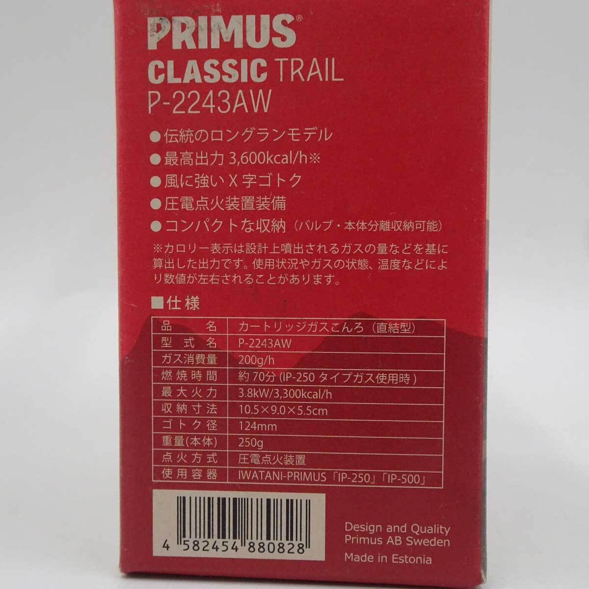 | ※商品は画像にあるものがすべてとなります。 【仕様】 ブランド:プリムス タイプ:クラシックトレイル ストーブ バーナー 型番:P-2243AW 重量:250g 収納時サイズ:10.5×9.0×5.5cm ガス消費量:200g/h 出力:最大3.8kW/3300kcal/h PSマークの種類:PSLPG 届出事業者名:イワタニ・プリムス株式会社 登録検査機関:JIA 詳細備考:ゴトク径124mm |