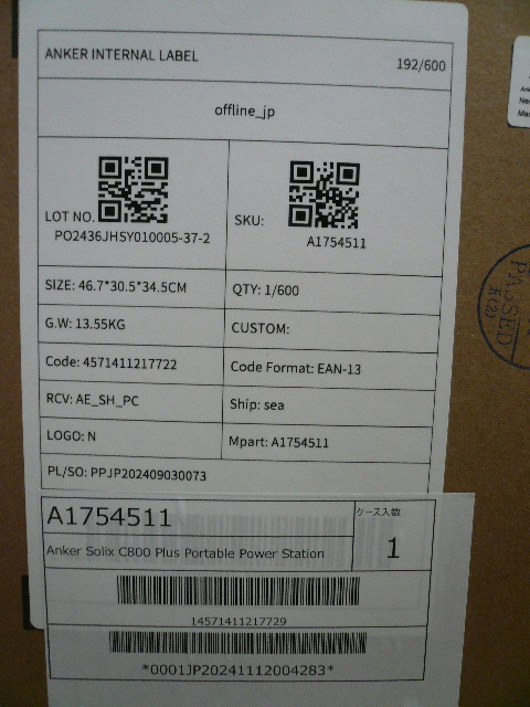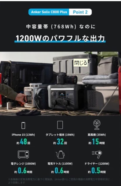 Anker Solix C800 Plus Portable Power Station アンカー ポータブル電源 の新品未使用品です。