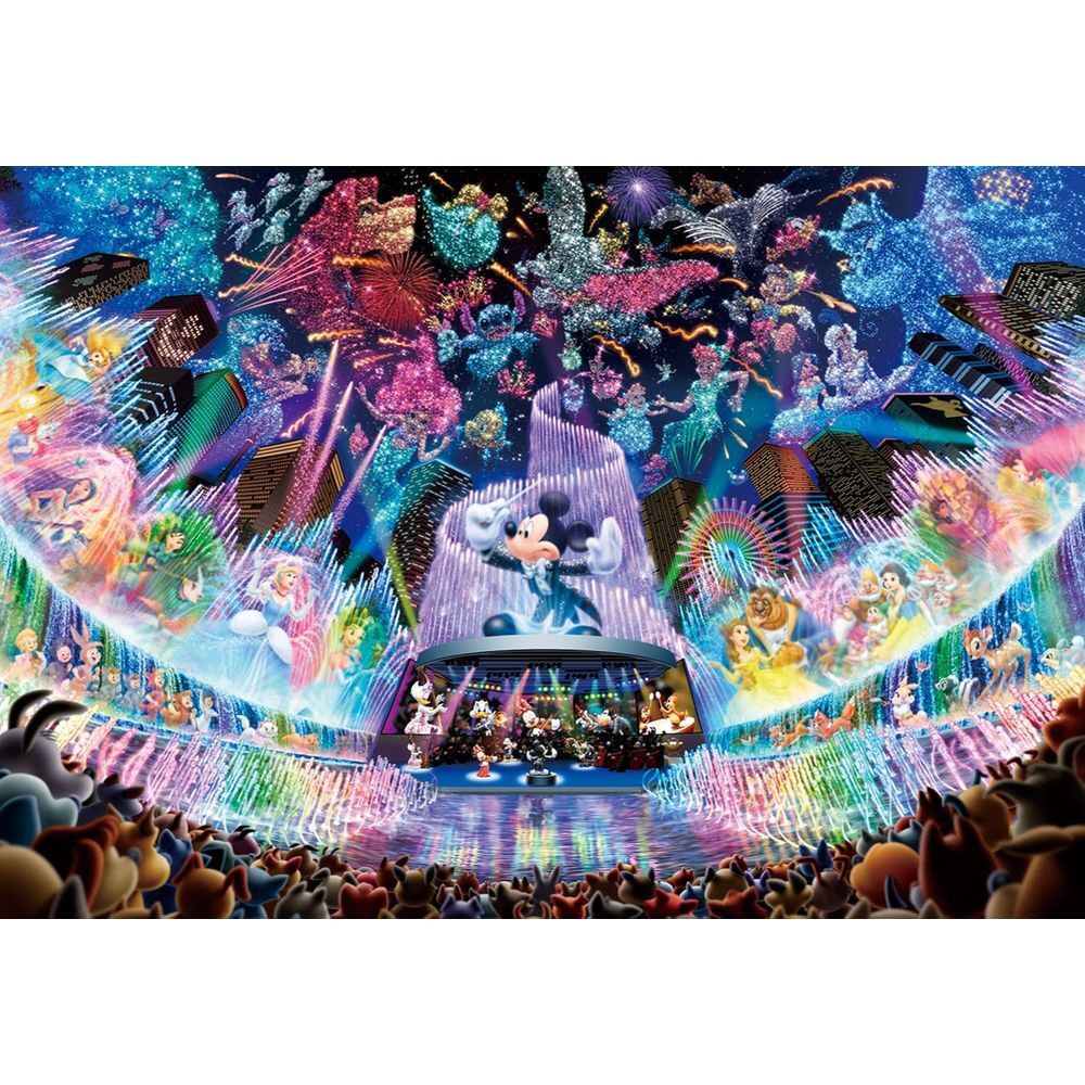 ディズニーの水上コンサートが、透明ピースでキラキラ輝く、ステンドアートジグソーパズル。ピースが小さいぎゅっとサイズ500ピース。