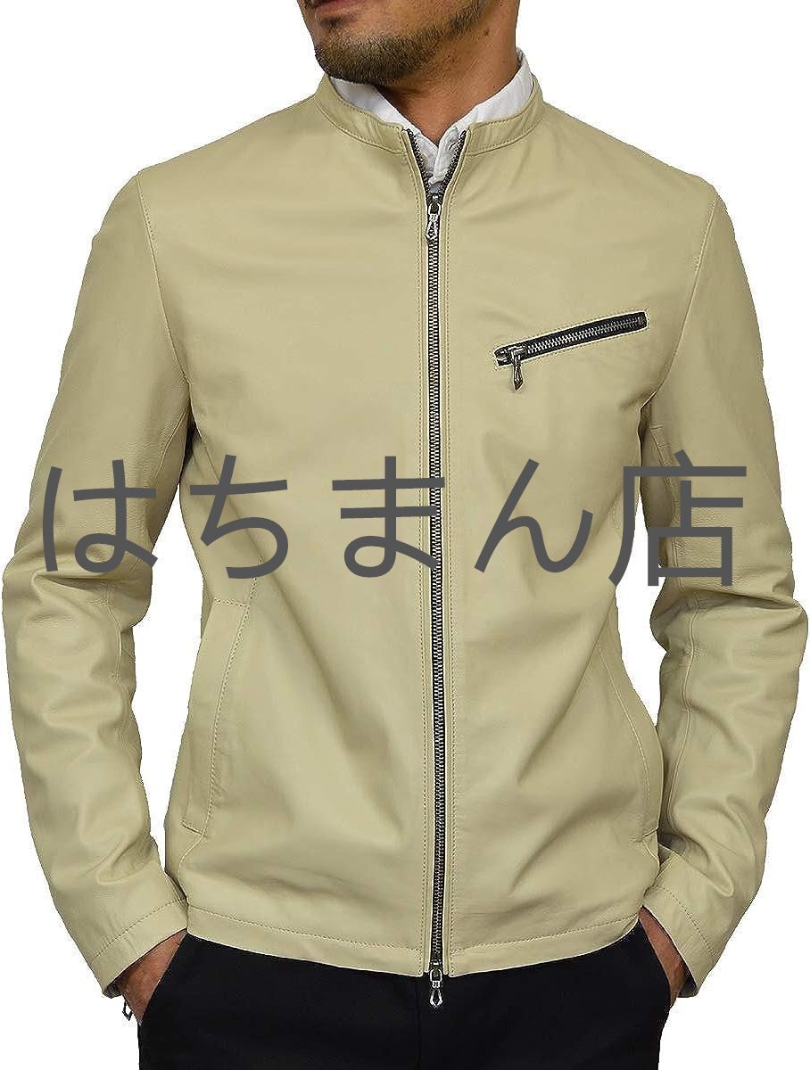 レザージャケット ライダースジャケット シングル ライダース メンズ 本革 革ジャン ラムレザー シンプル おしゃれ 軽量 アイボリー M-2XL