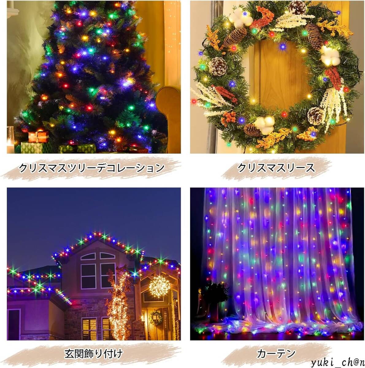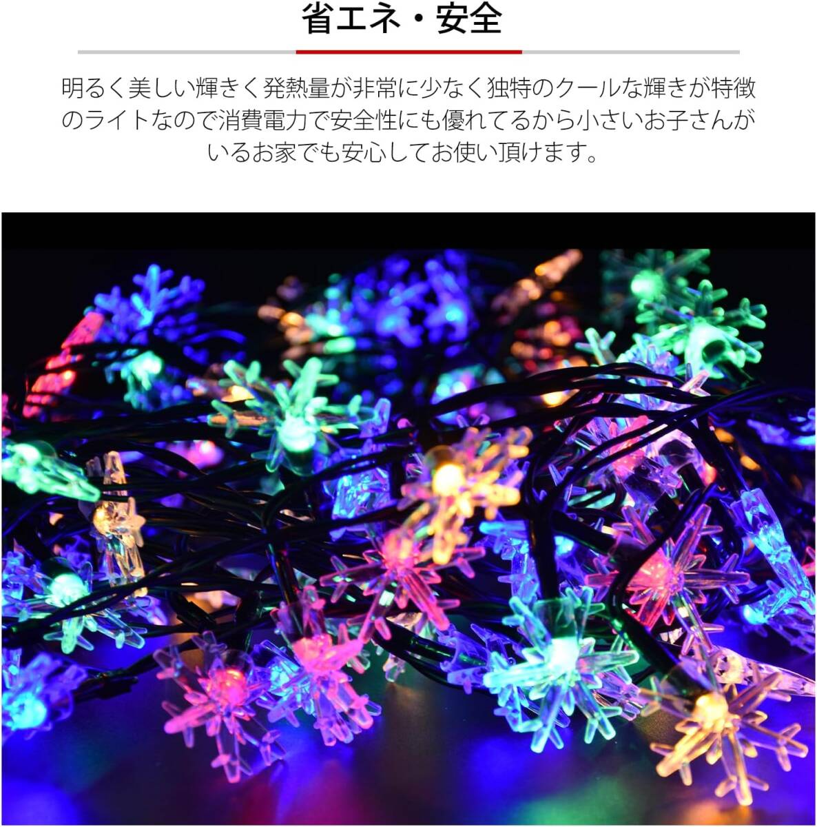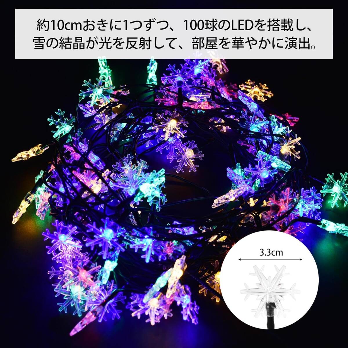 長さ約12メートルに100個のLED電球が付属し、多彩な8種類の点灯パターンでクリスマスや特別なイベントを華やかに演出します。
